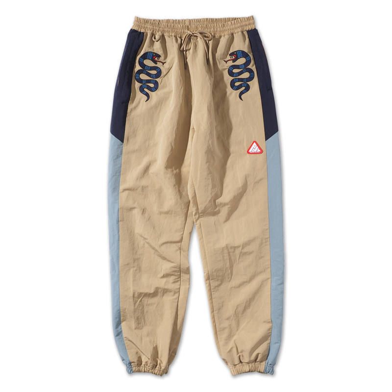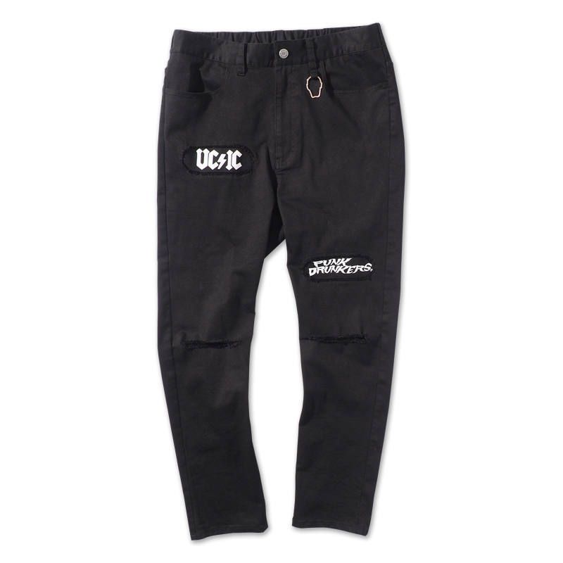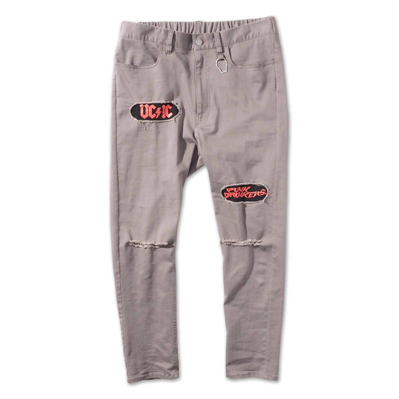 ダメージ感のあるパンツに、ブランドロゴが当て布された、PUNKなデザインが超絶カッコいい!