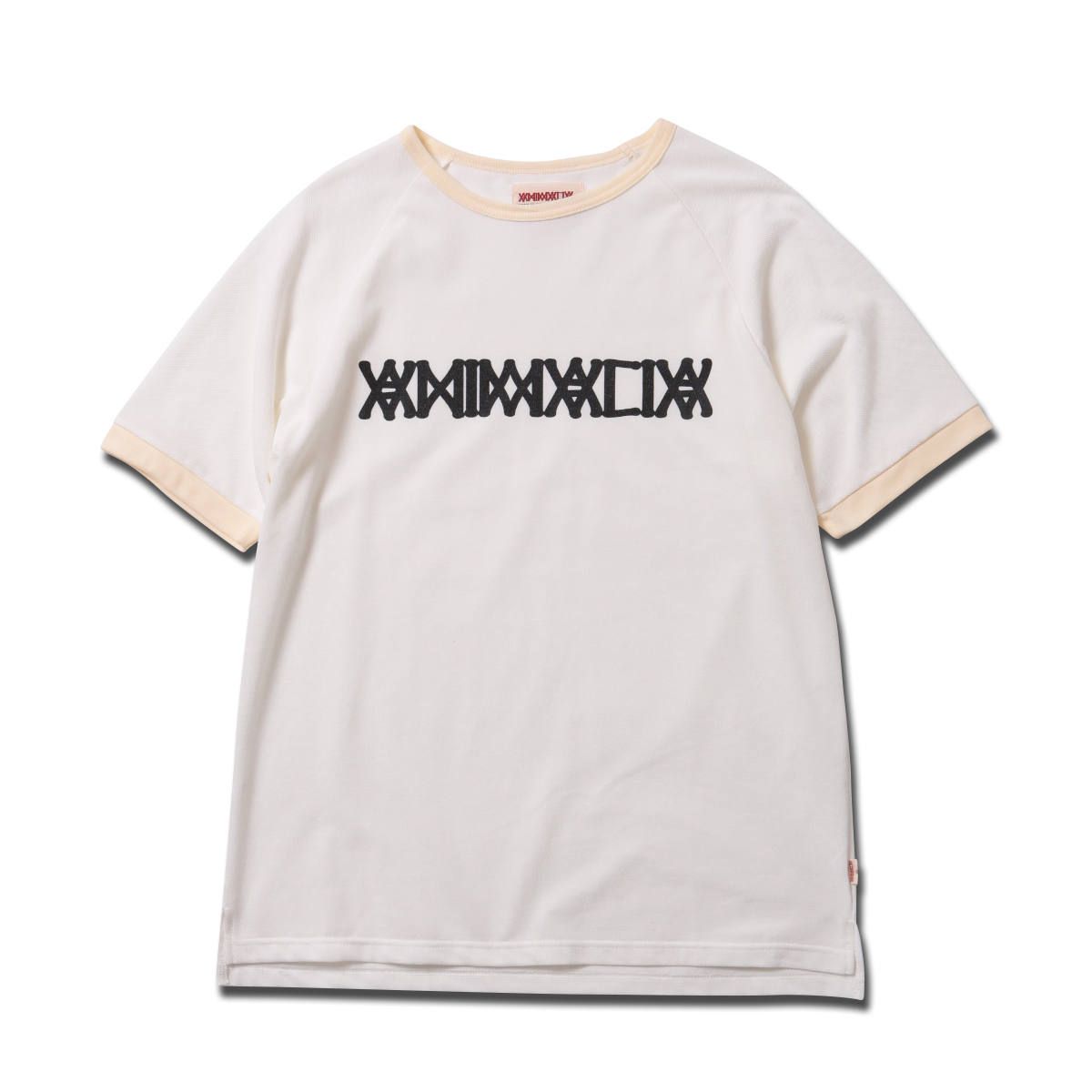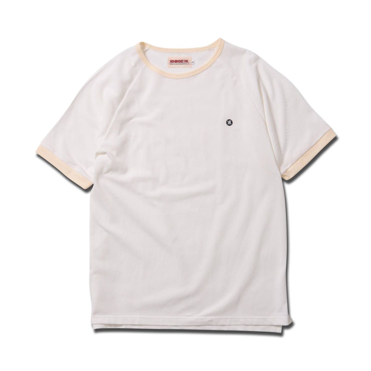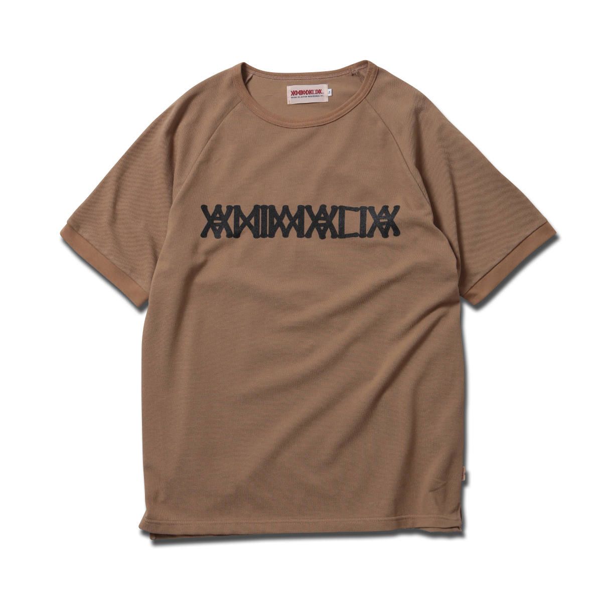 ポロシャツなどに使われるカノコ生地を使って作成したラグランスリーブ、オブロングネック(横に広め)サイドスリット入りカットソー。