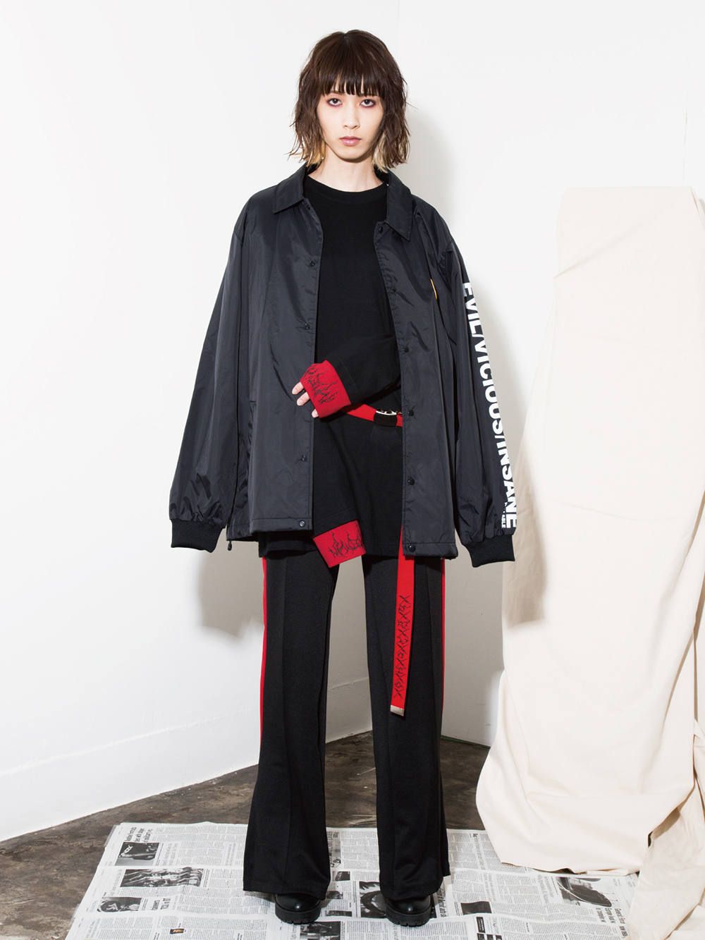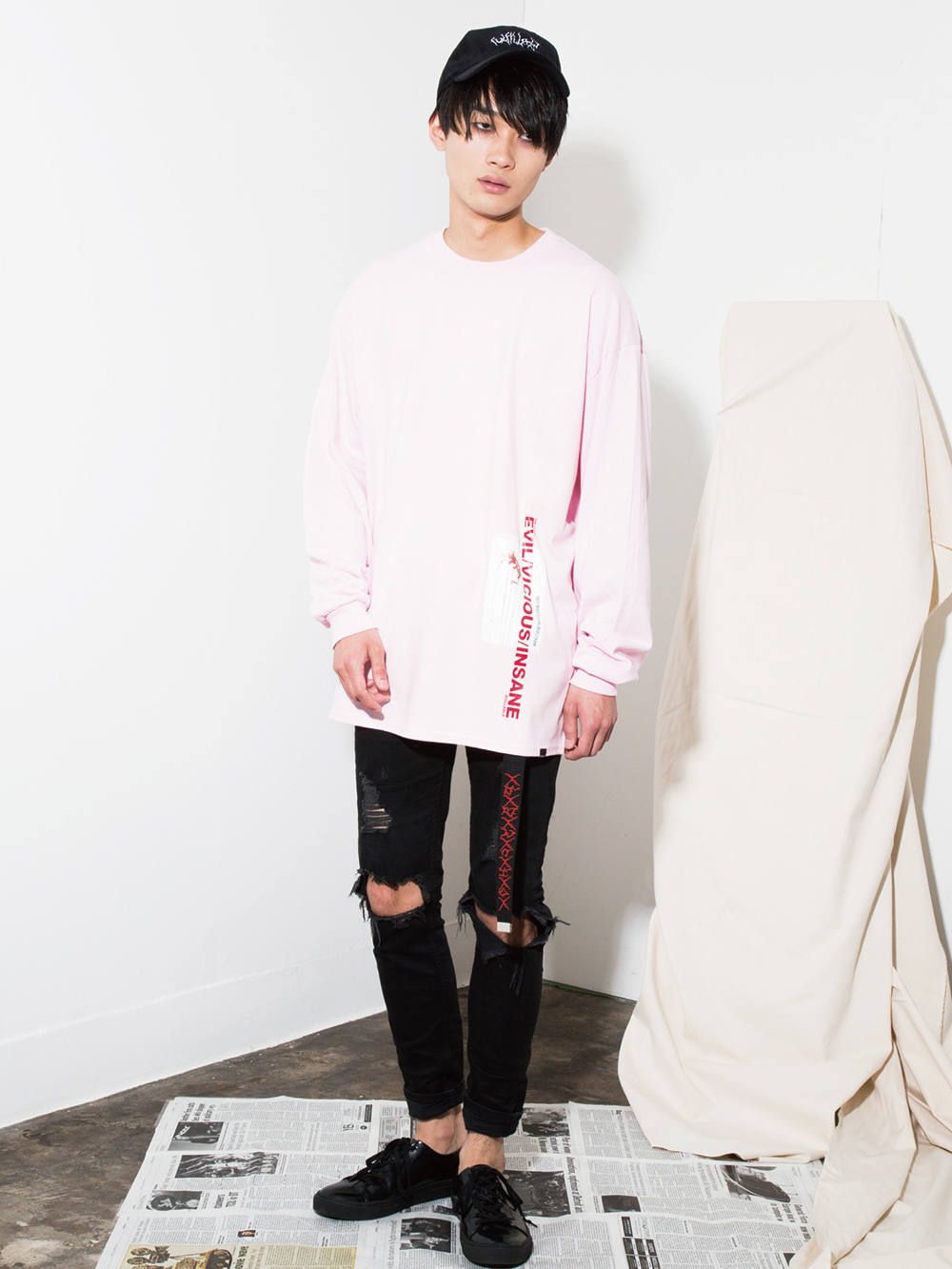 胸元には存在感のあるグラフィック[VAIN]、 両袖にはあえて小振りな刺繍デザインを施した、LILらしいセンスの光るロングスリーブ