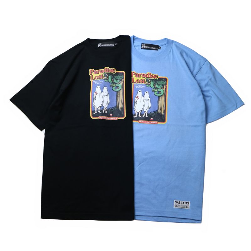 禁断の果実をモチーフとしたイラストをプリントした T シャツ。