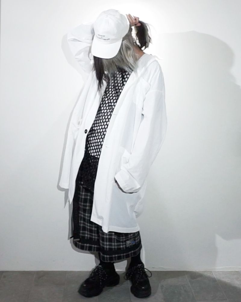 大振りなボタンやナイロンテープ をアクセントに拘りのディティールを詰め込んだアイテムです。
