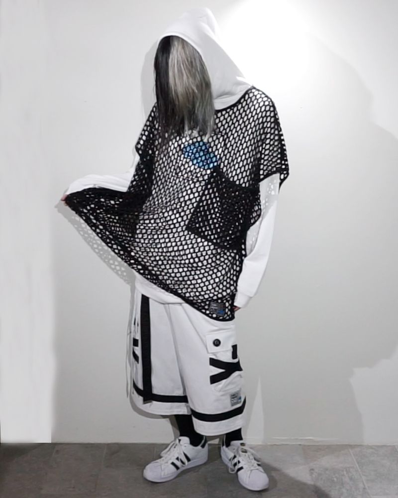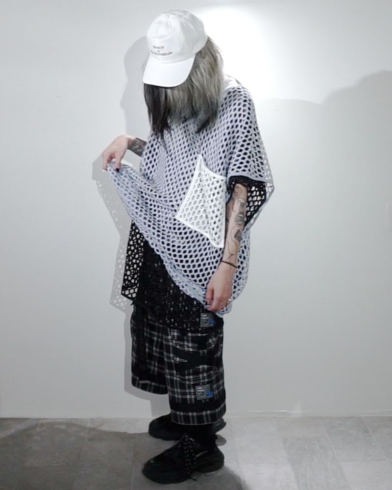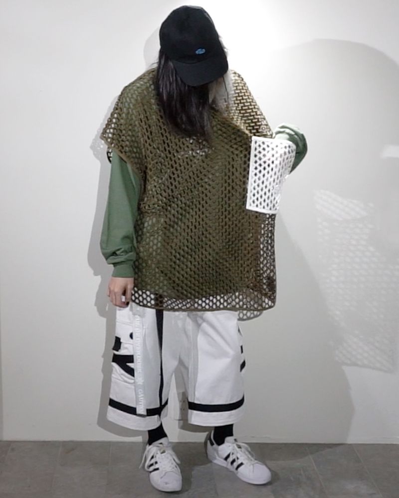 六角形に編まれたネット生地が特徴的なスリーヴレス。