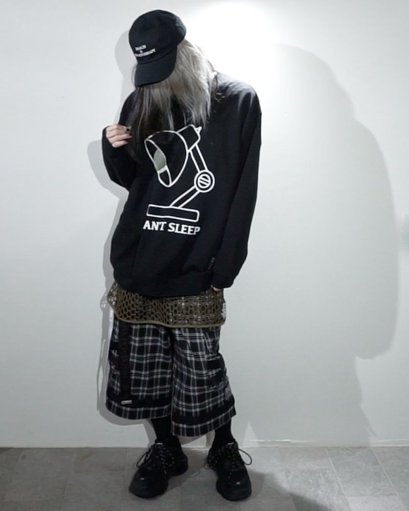 スタンドライトを模したデザインをプリントしたクルースウェット。