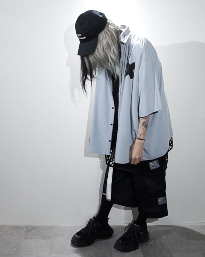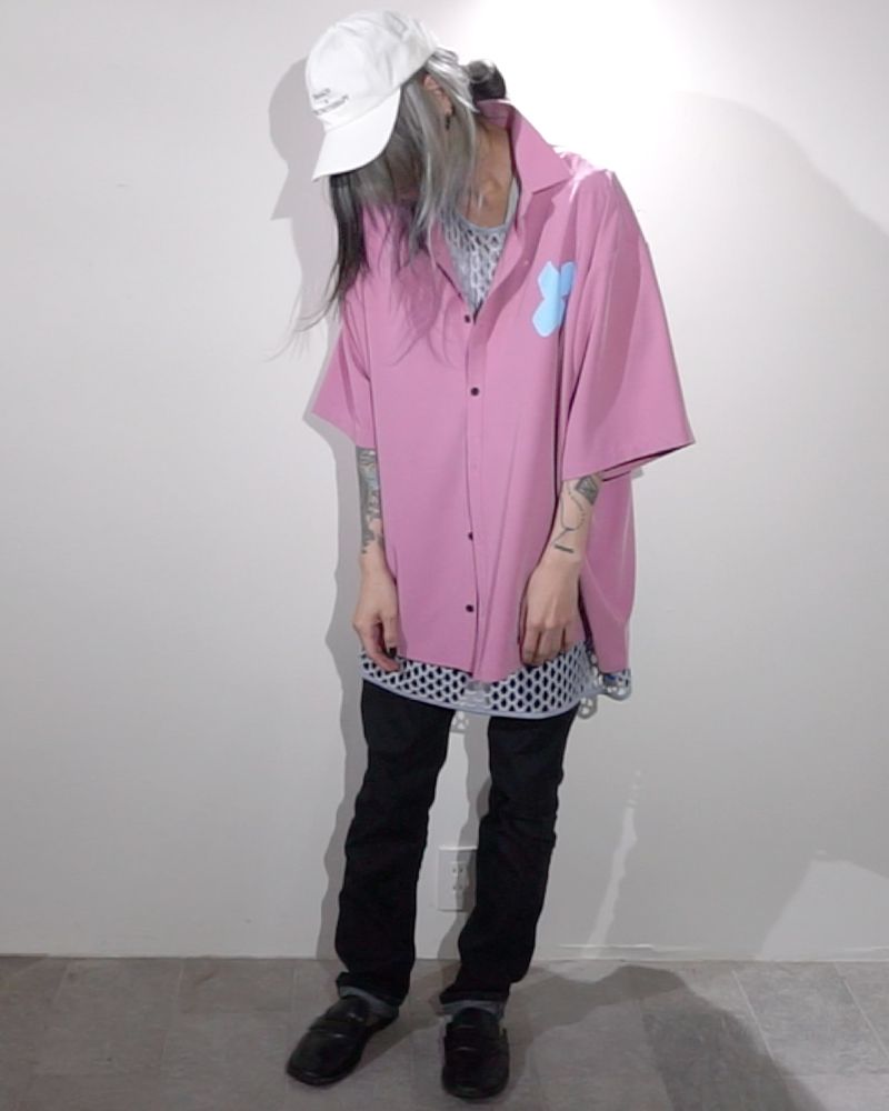 ドレープ感が印象的な化繊生地を採用したショートスリーヴシャツ。