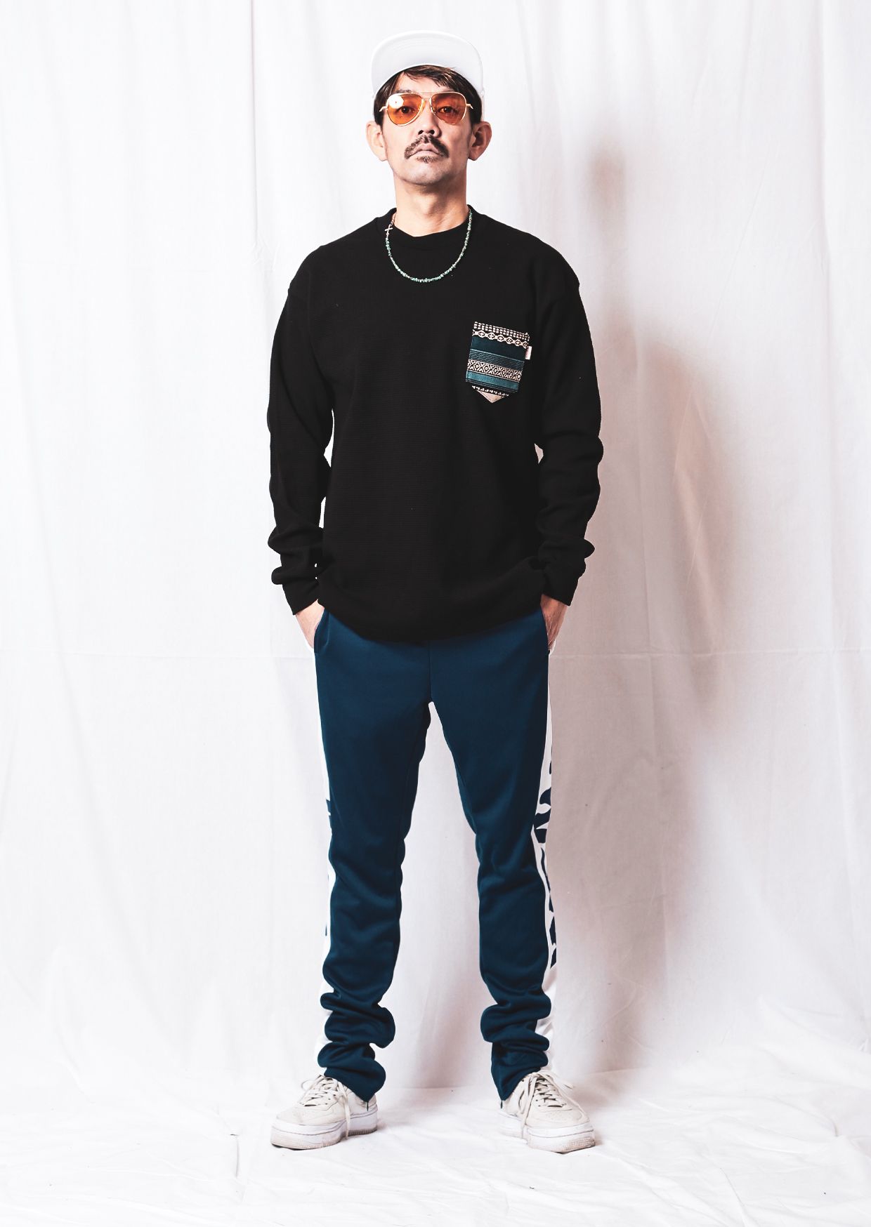 ネイティブ柄のボーダーポケットがブランドらしさを演出。