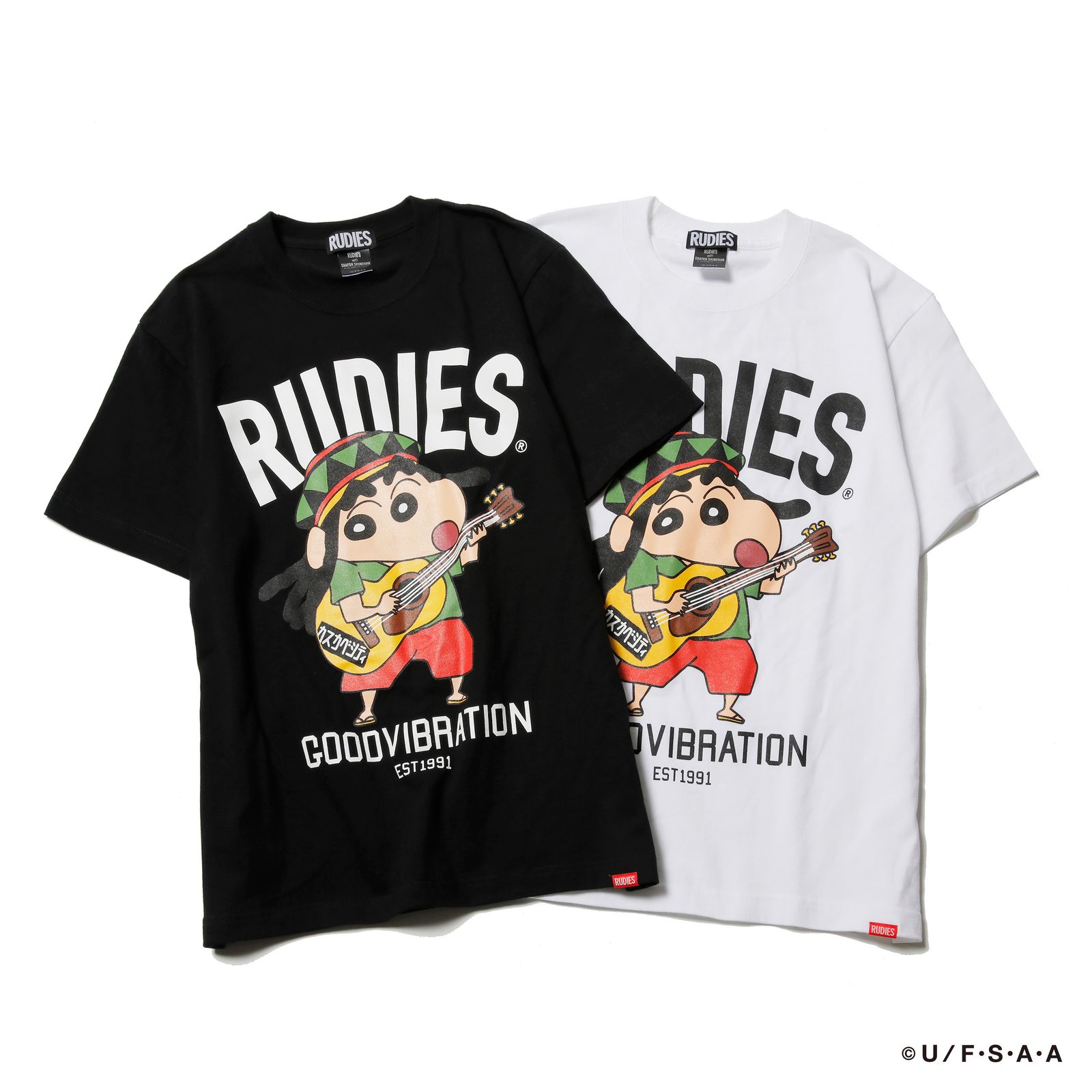 フロントにはギターを抱えたラスタマンルックのしんちゃんをプリント。"DREADでROCK" する、RUDIE'Sらしい1枚に仕上げました。