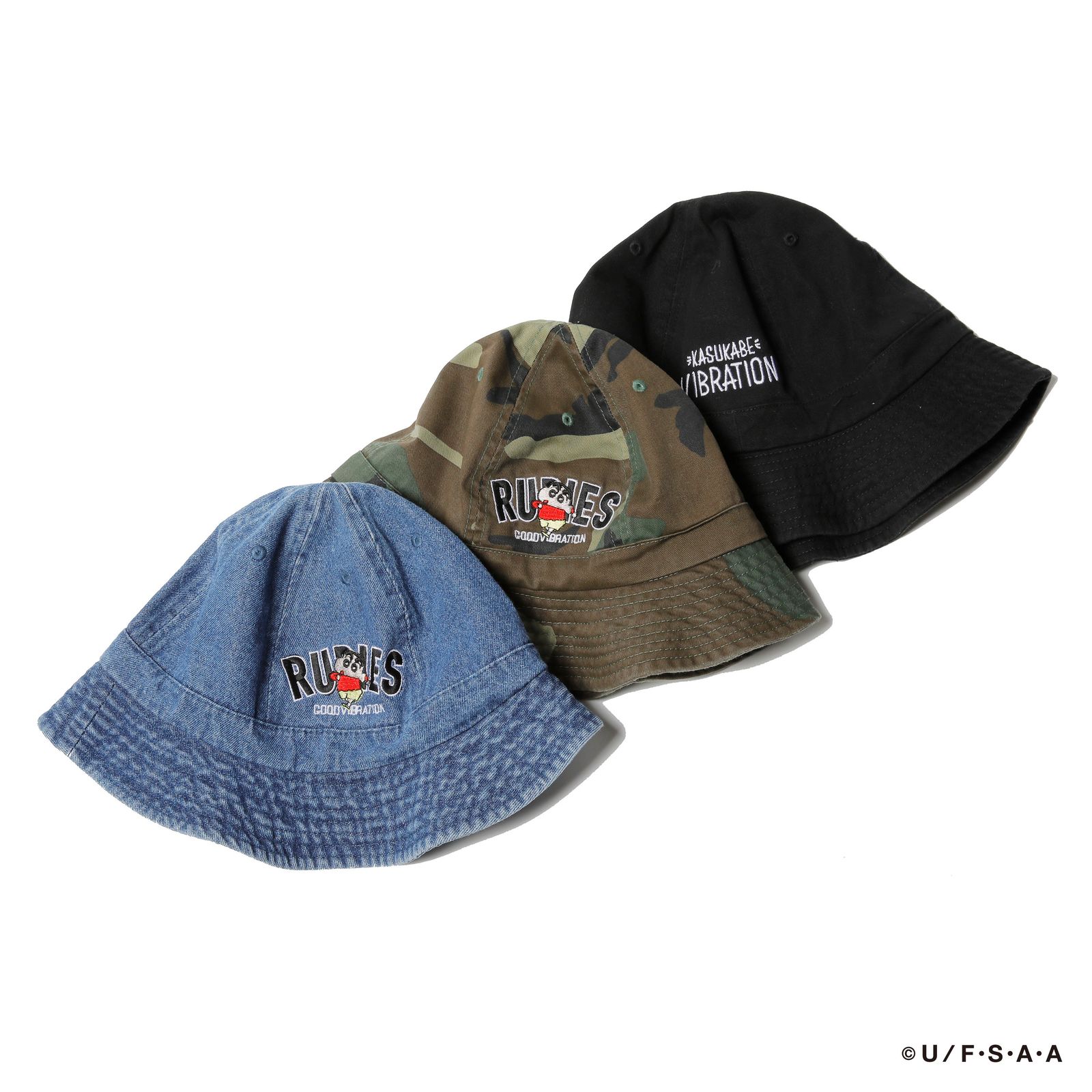 クレヨンしんちゃんがまるで "MOSH" しているかのようなグラフィックを刺繍で表現したハットです。反対側には "KASUKABE VINRATION" を同じく刺繍で配しました。クールなブラックと、よりストリートライクなウッドランド、インディゴの3種類でスタイリングのアクセントになってくれます。