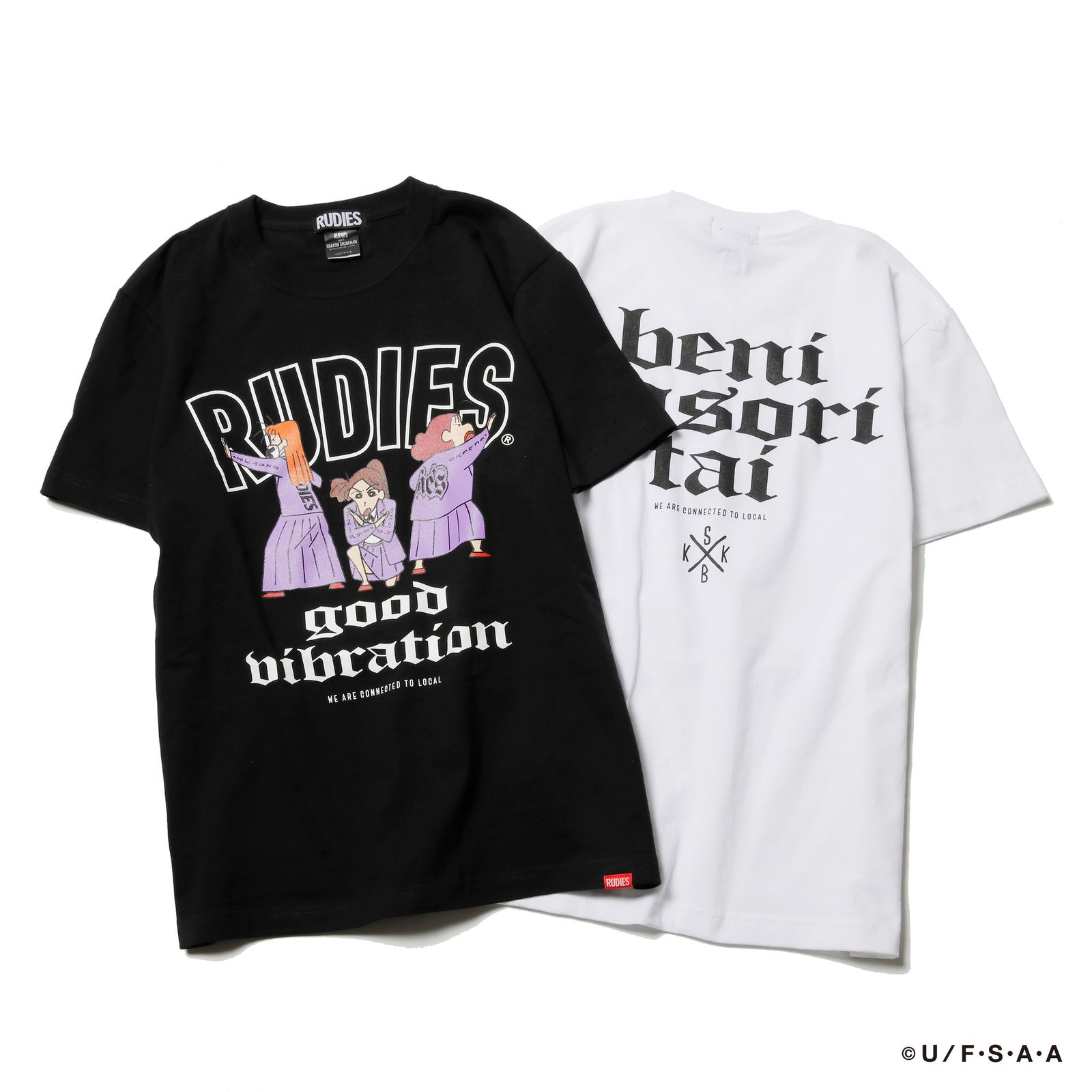 劇中に登場する女子高生3人組 "埼玉紅さそり隊" をプリント。RUDIE'Sらしいフォントで背面には "BENI SASORI TAI" を配しました。
