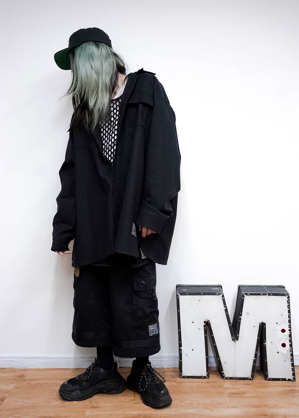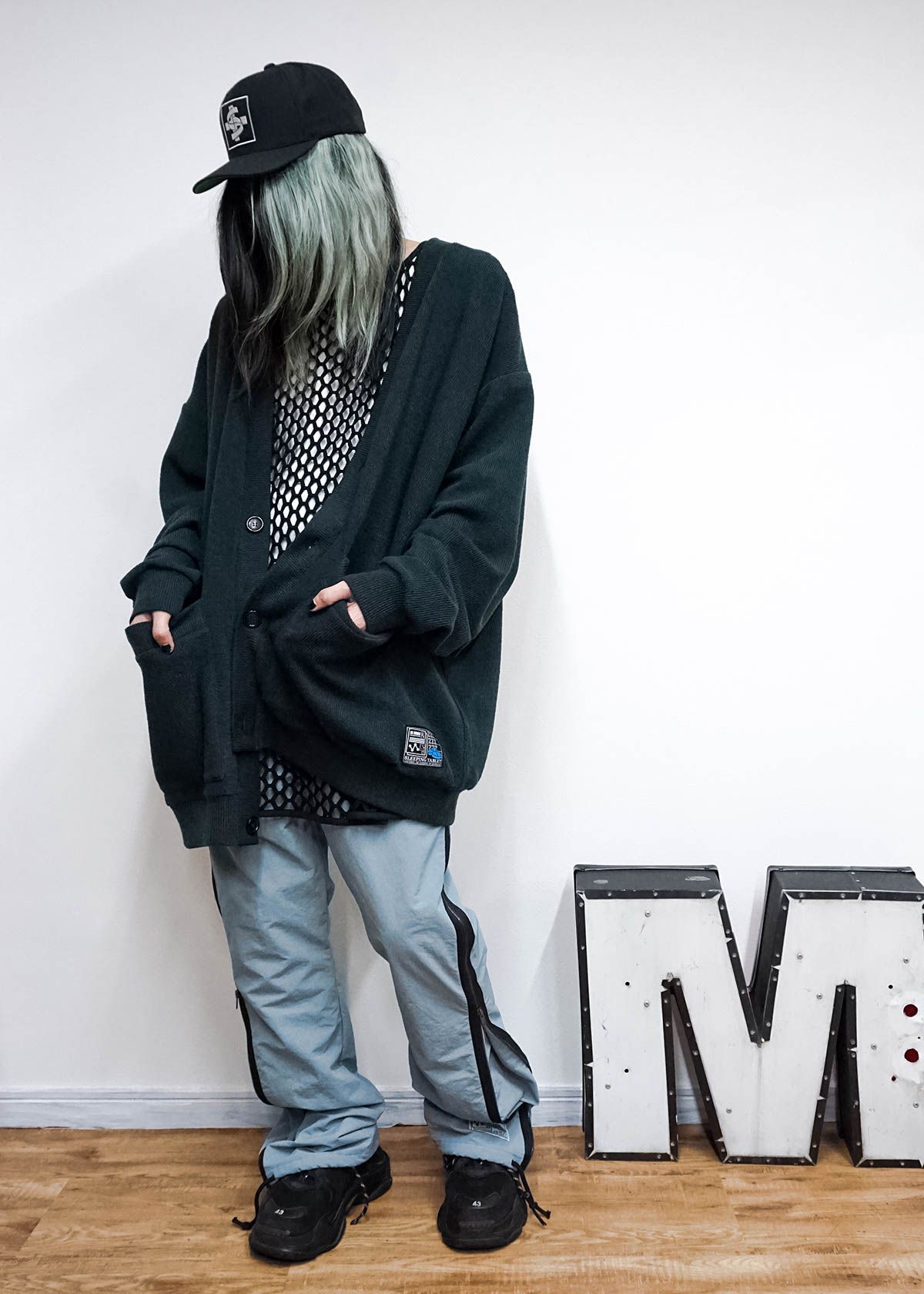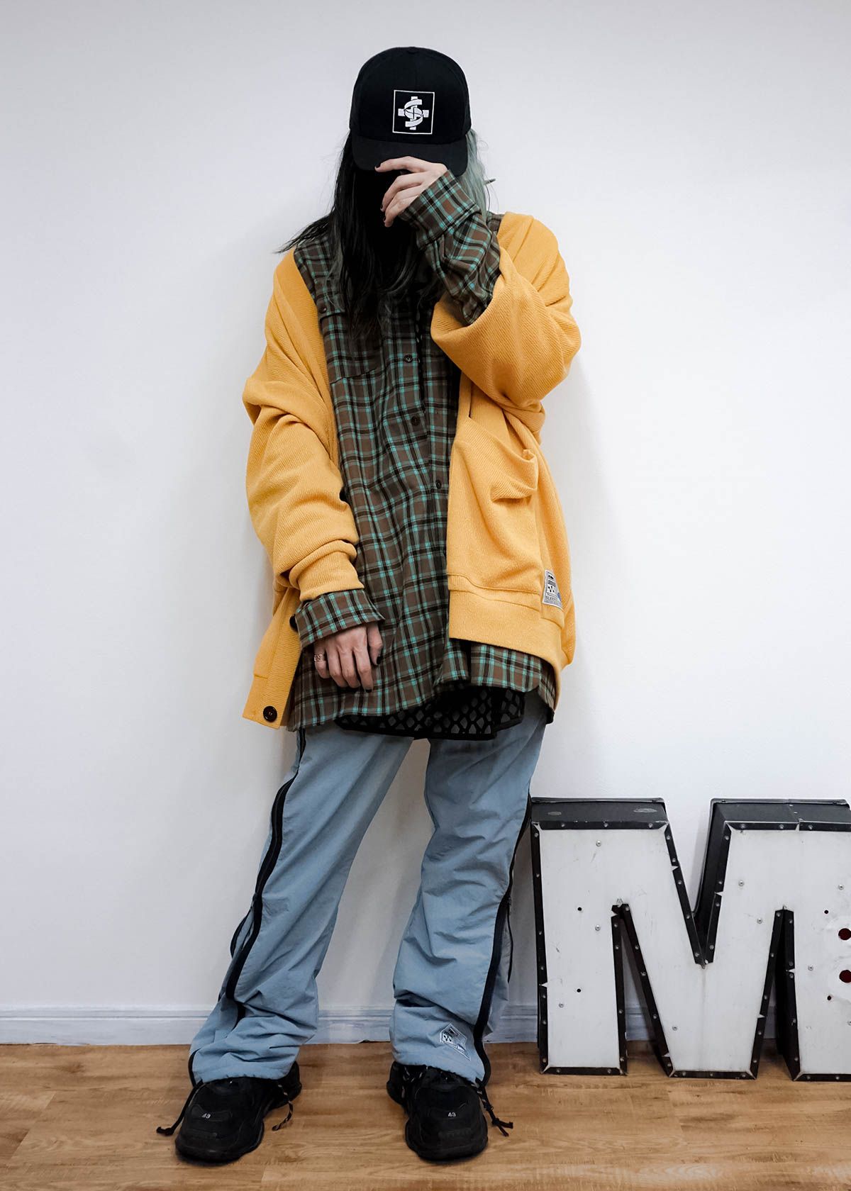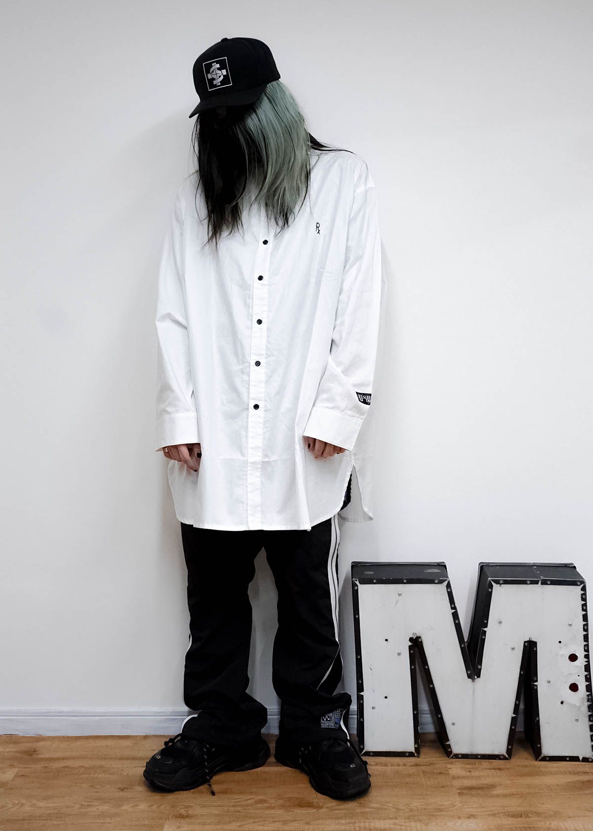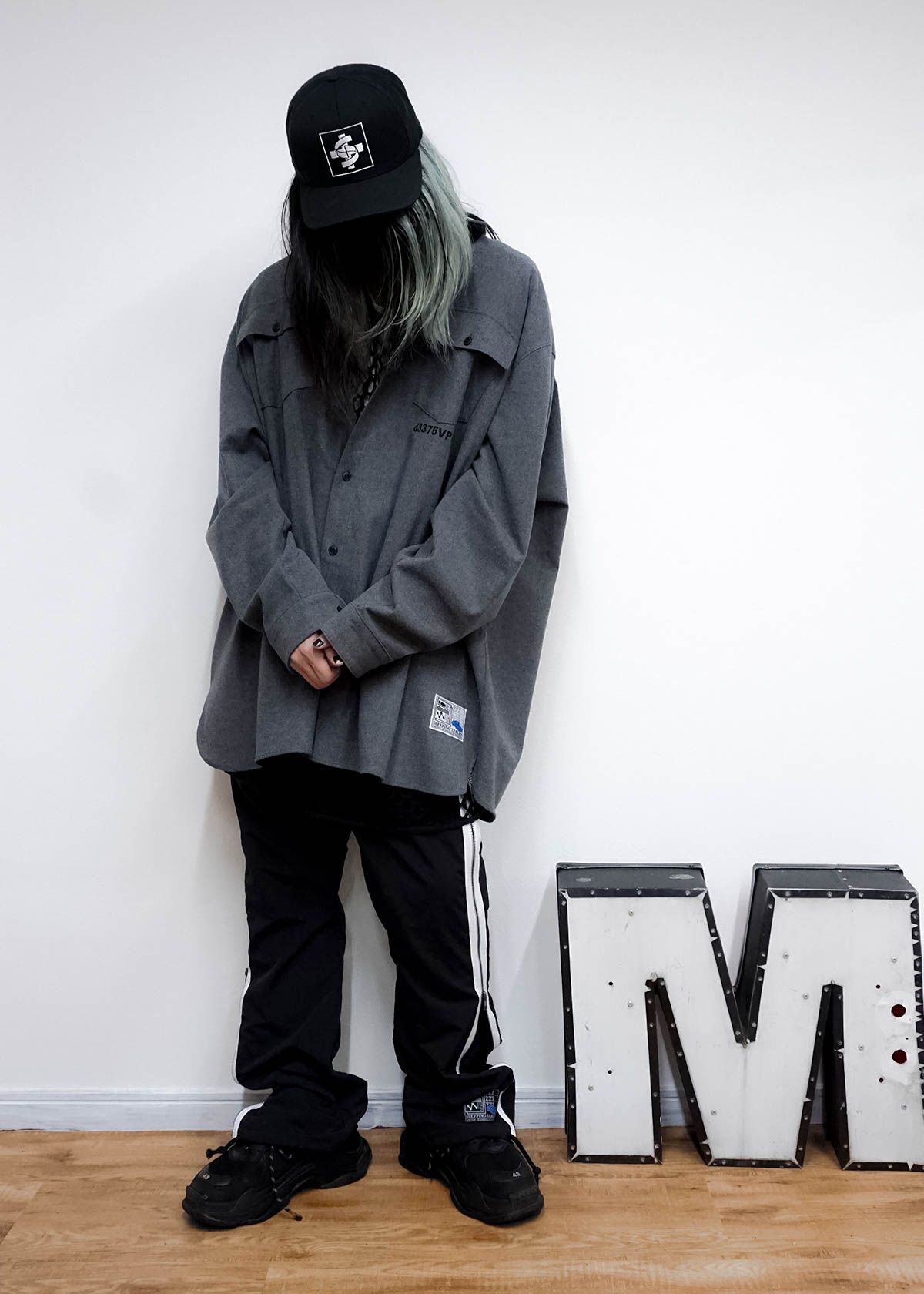 ゆったりシルエットとポケット下に暗号が刺繍された