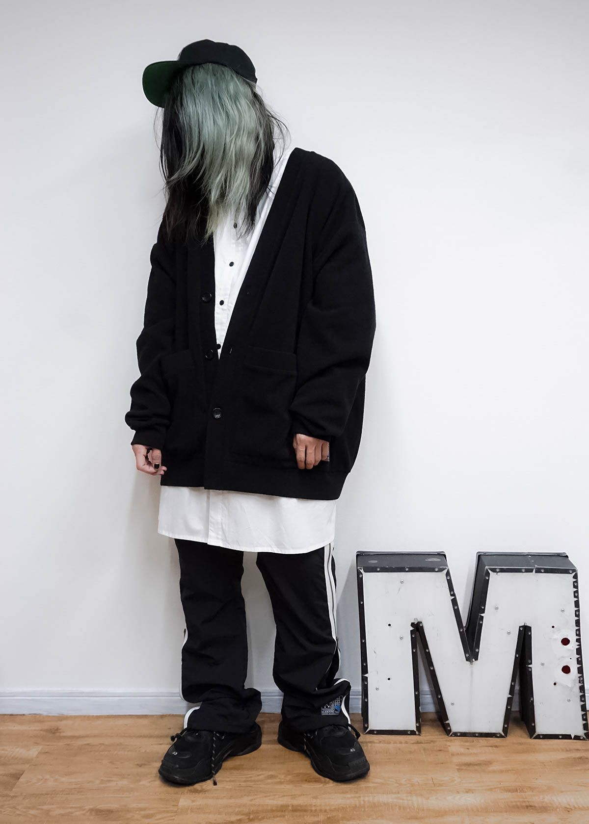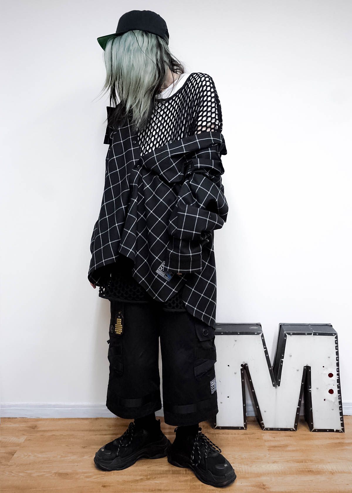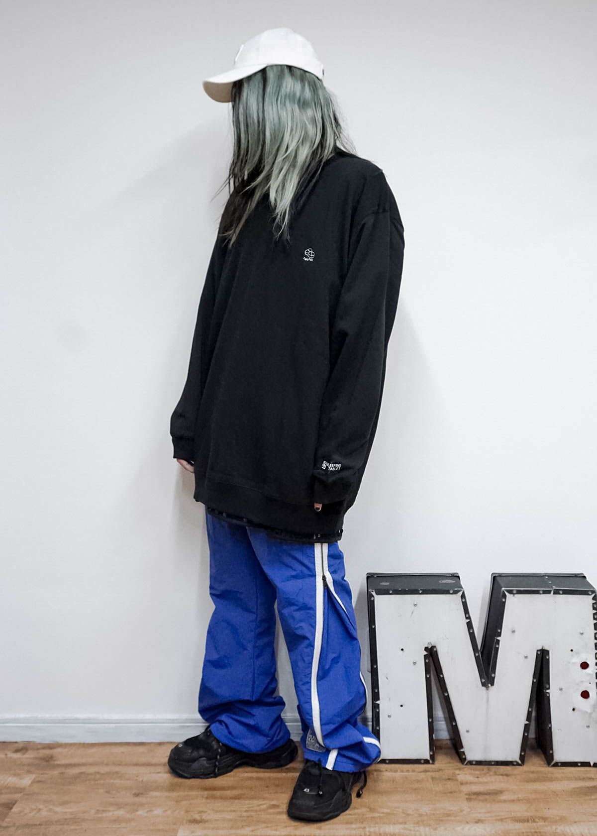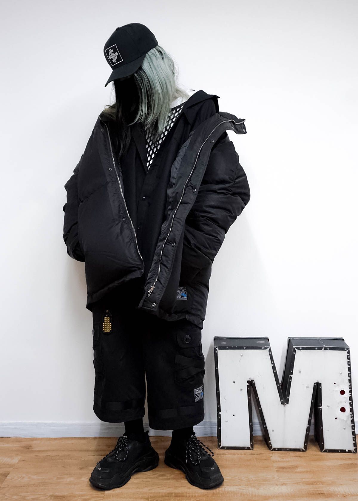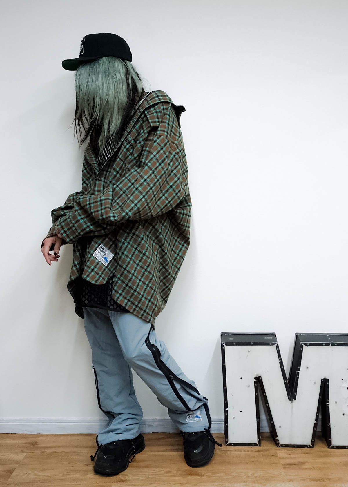 ゆったりシルエットとポケット下に暗号が刺繍された