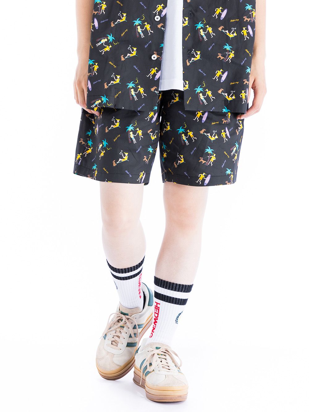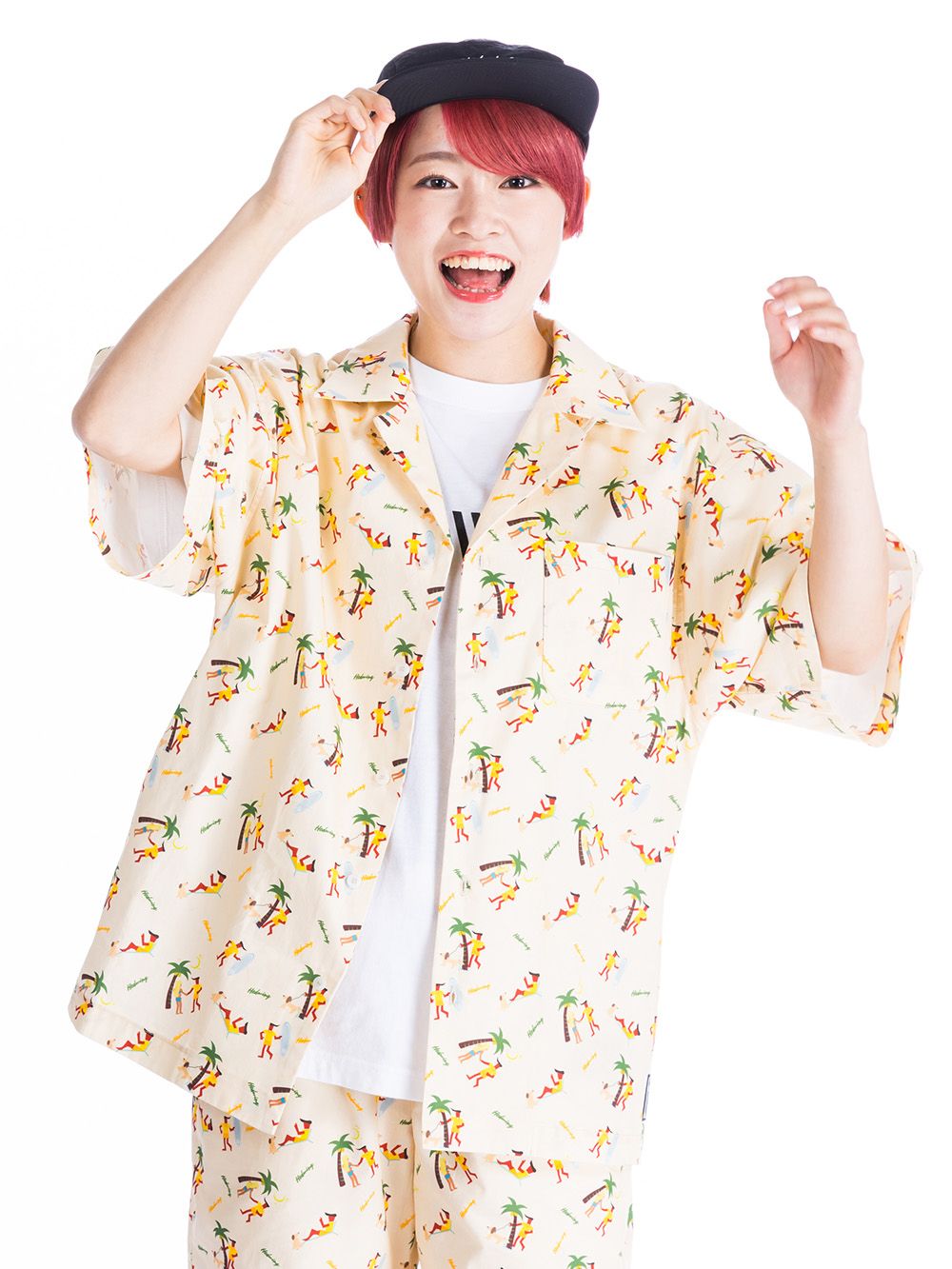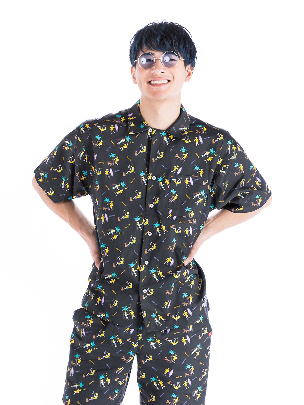 なハワイ感全開なグラフィックが総柄プリントされたシャツ。