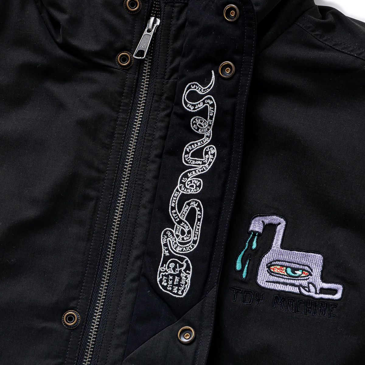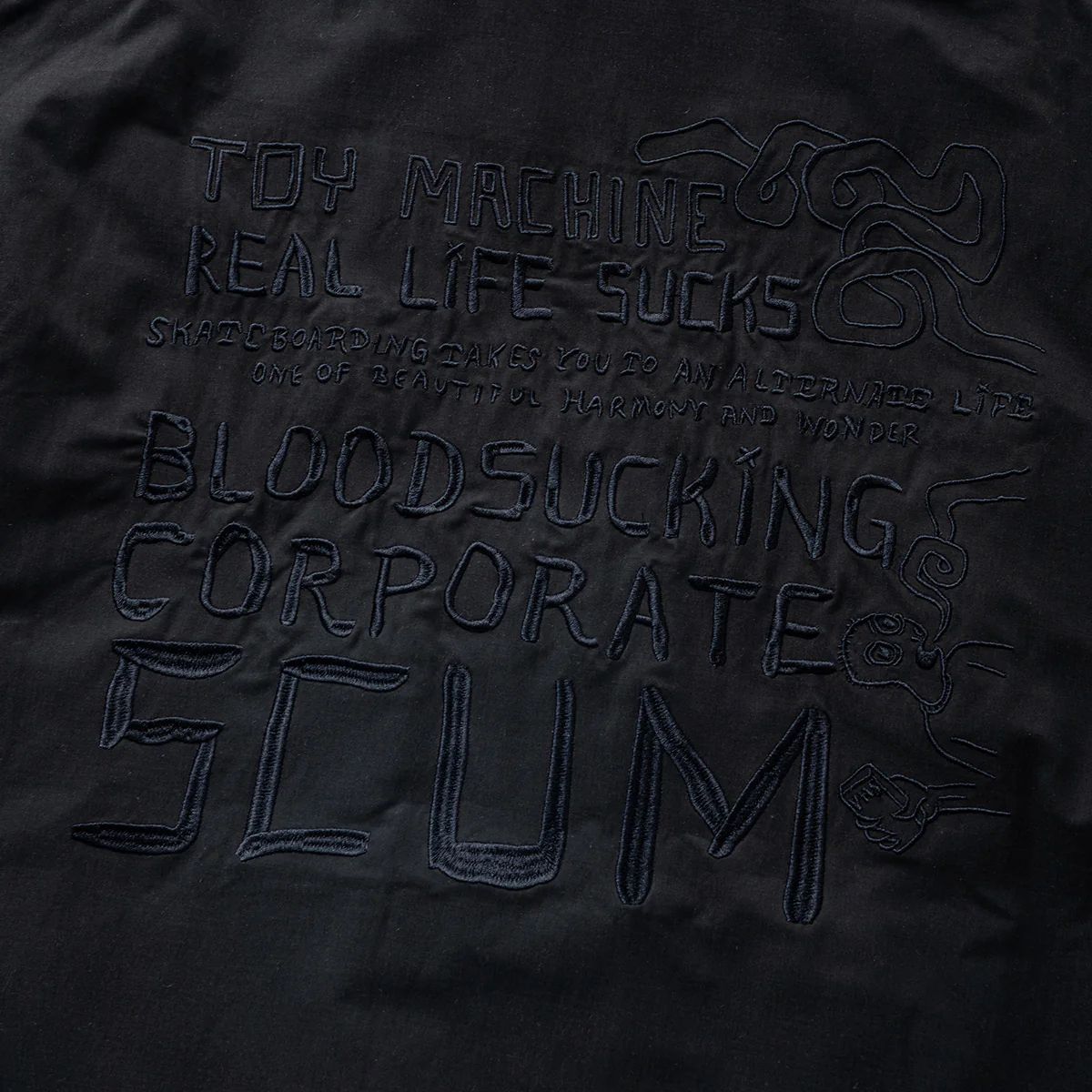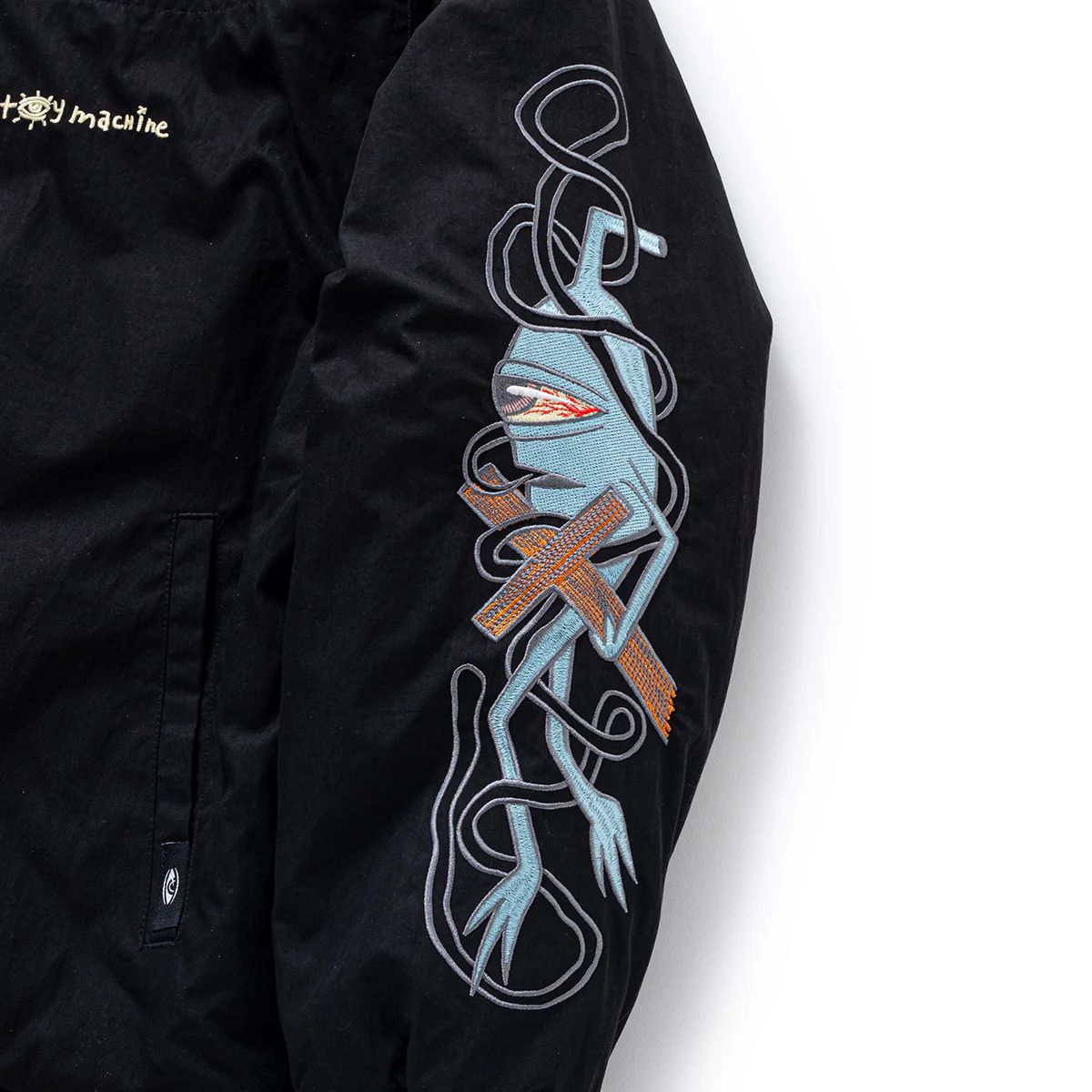 背中には同色刺繍がドーン!さらにはボタンの開閉で見え隠れするグラフィックも!