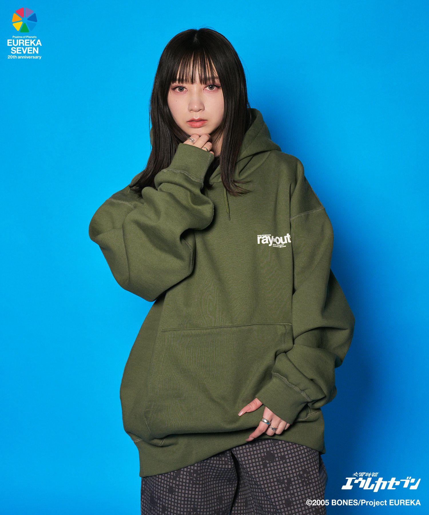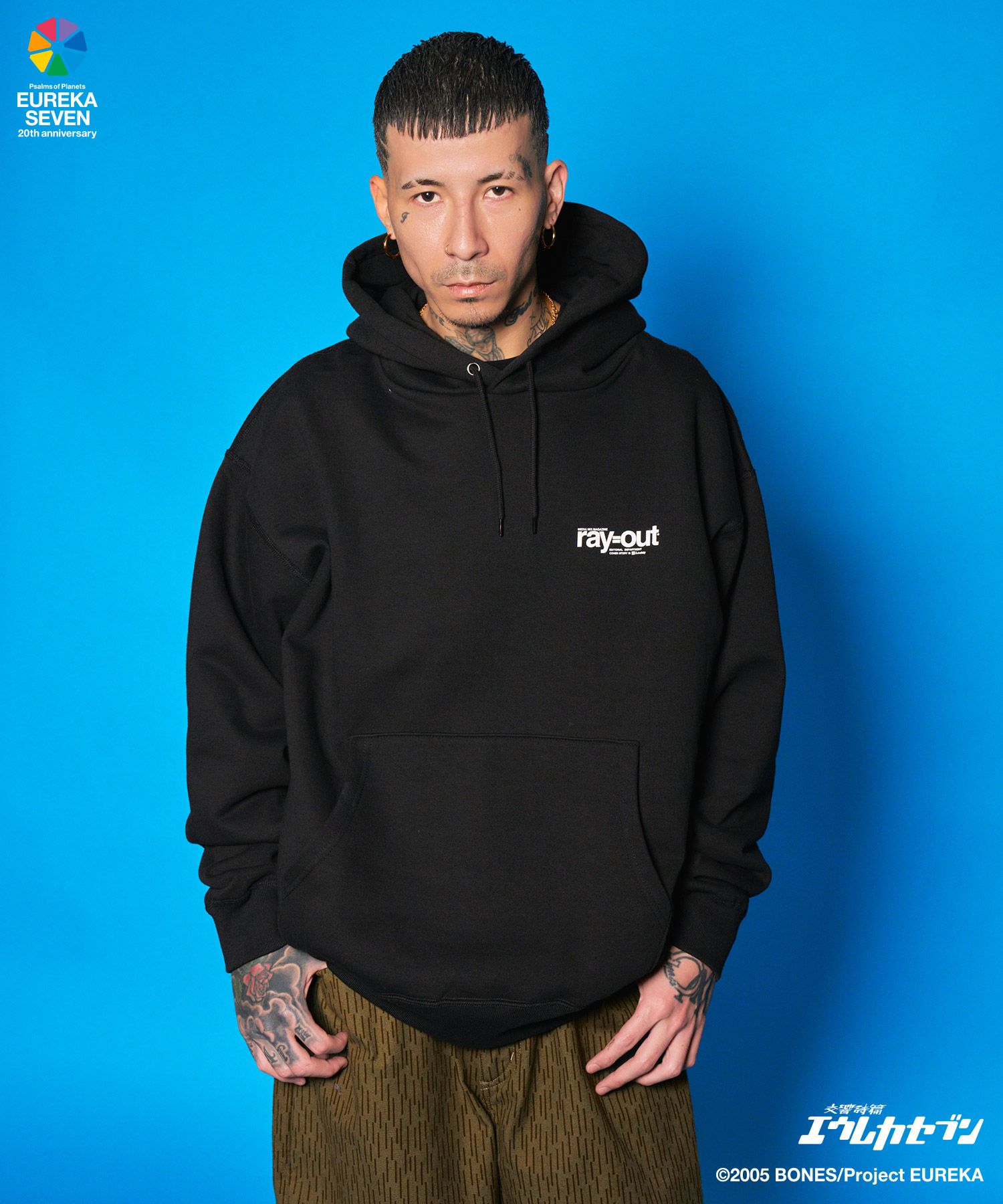 作中に登場する雑誌「ray=out」の編集部用のパーカをイメージ。