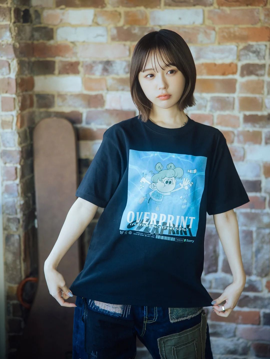 色んなことを妄想させるイラストがラバープリントされたTシャツ。