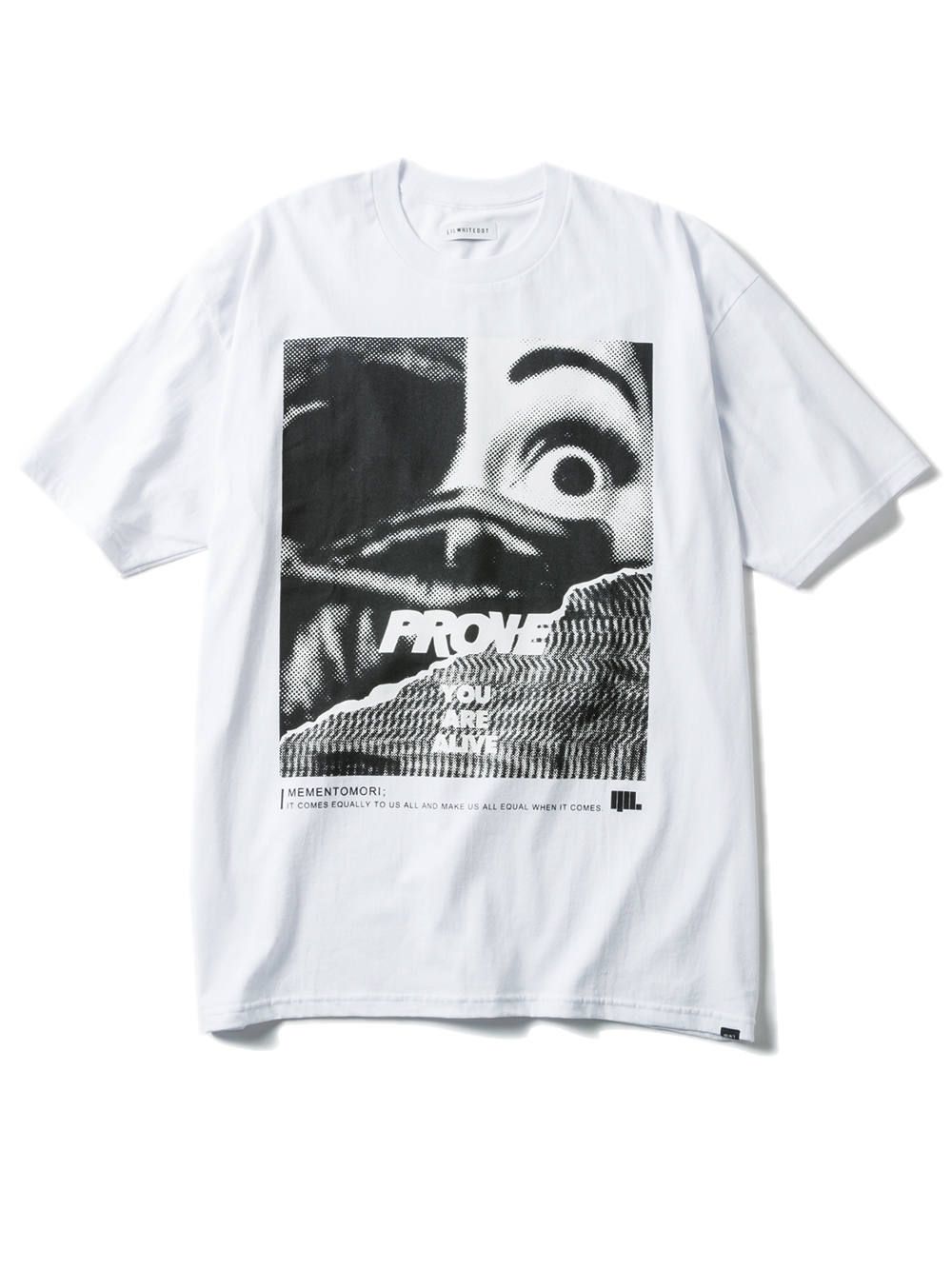 “生を証明せよ”という強いメッセージを、白黒2版の特大プリントでフロントにオン