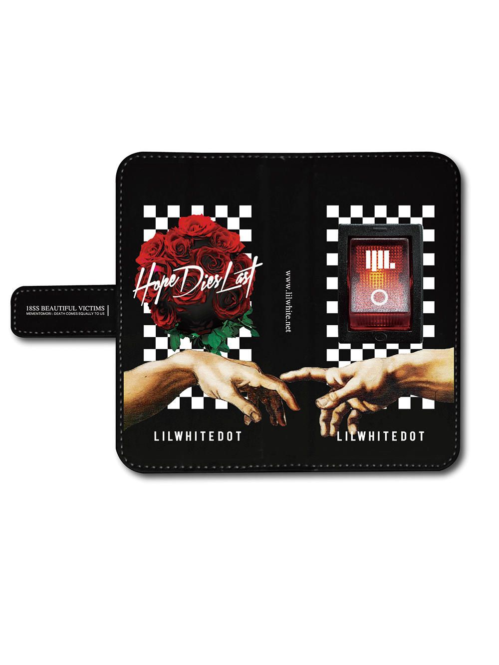 創造主の手、生命の象徴としての薔薇、電源スイッチ 生と隣り合わせにある死を、独特の表現で描写したデザイン