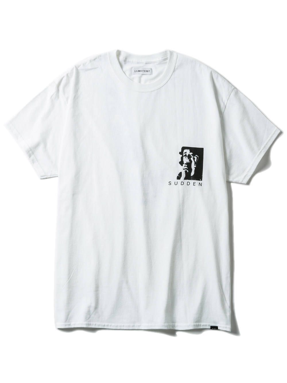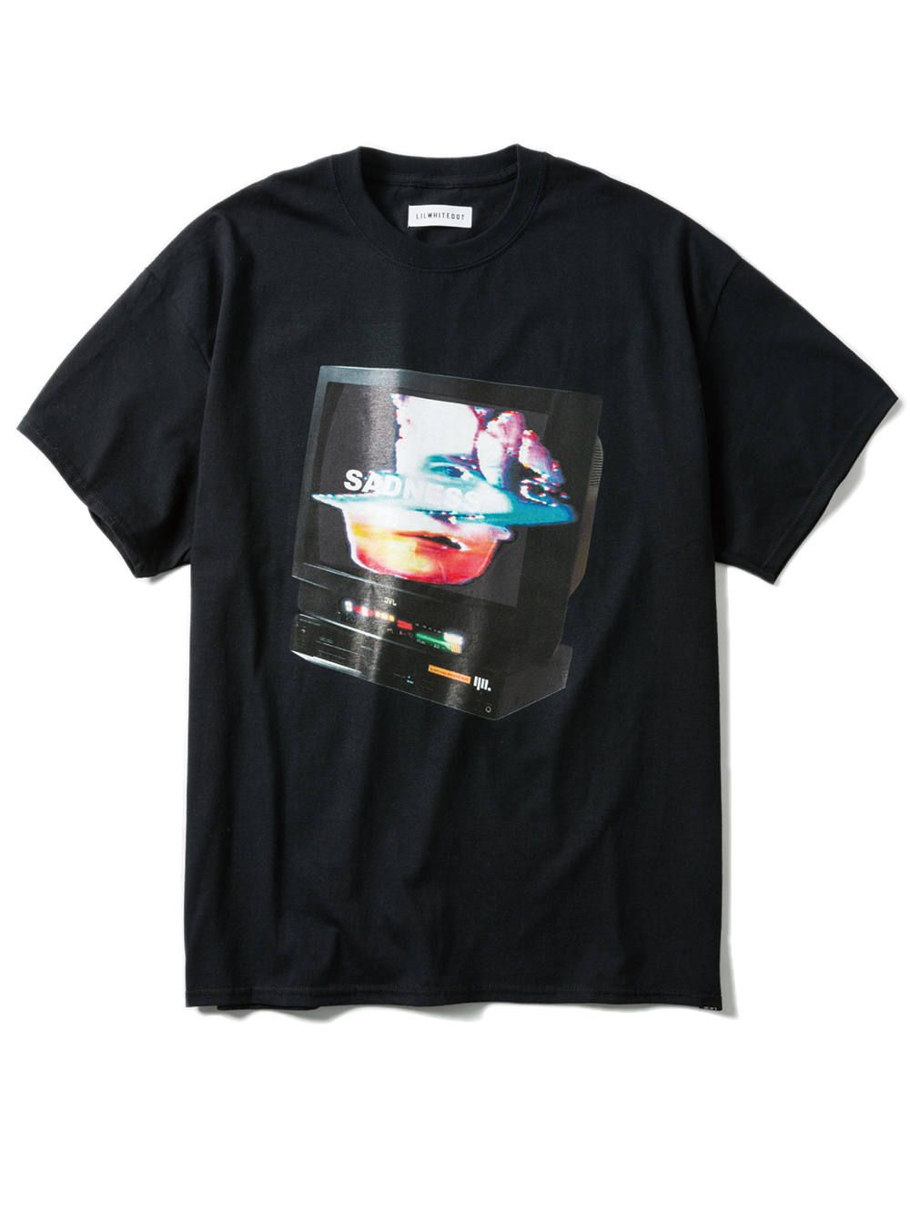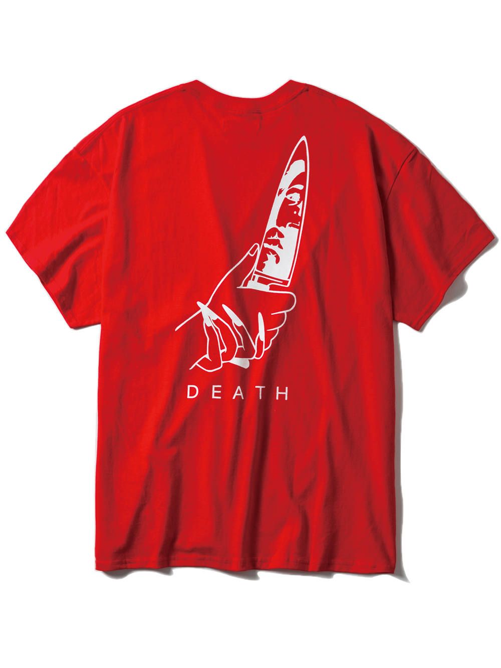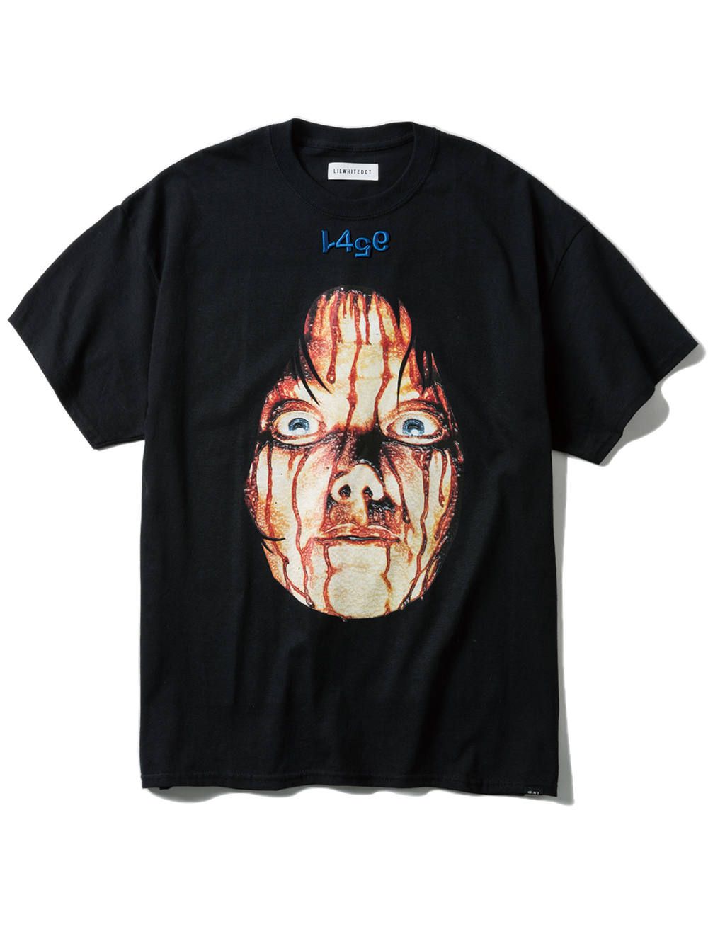バックには布を被せられた横たわる女性と手向けられた花 フロントの”HELL IS HERE”のプリントが意味深長な一着