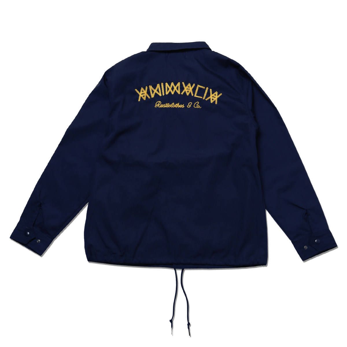鉄板のコーチJKTは、フロント、バックにチェーンステッチライクなロゴが施された