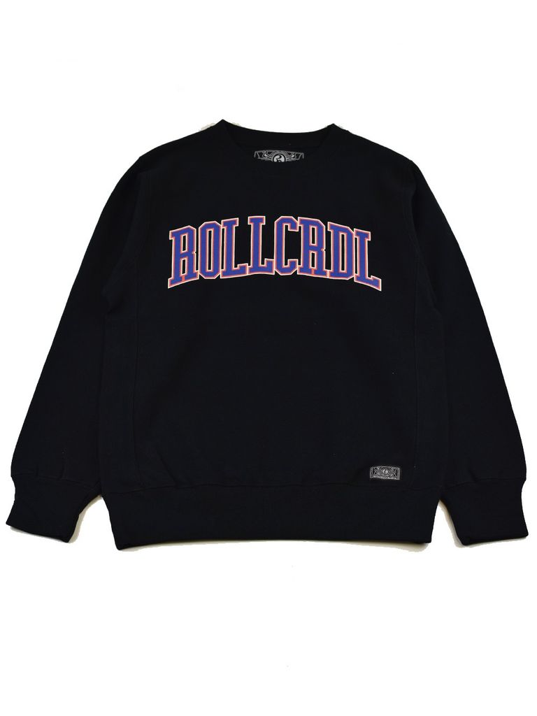 カレッジ風なフォントロゴが特徴のクルーネックスウェット。