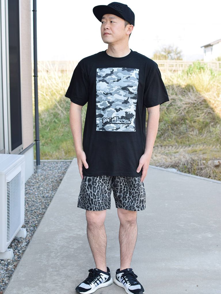 モノトーンカモのボックスロゴが大判プリントされた存在感のある1枚!