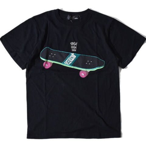スケートボードを大胆に表現したALDIESオリジナルのTEEシャツ。 プリント、刺繍、生地の叩き付けなど、様々な手法によりできあがった立体感のあるスケートボードです。 ゆるい雰囲気ながらも、こだわりが詰まった1着となっています。 ボディが単色だからこそ、独特なデザインの存在感は抜群です。
