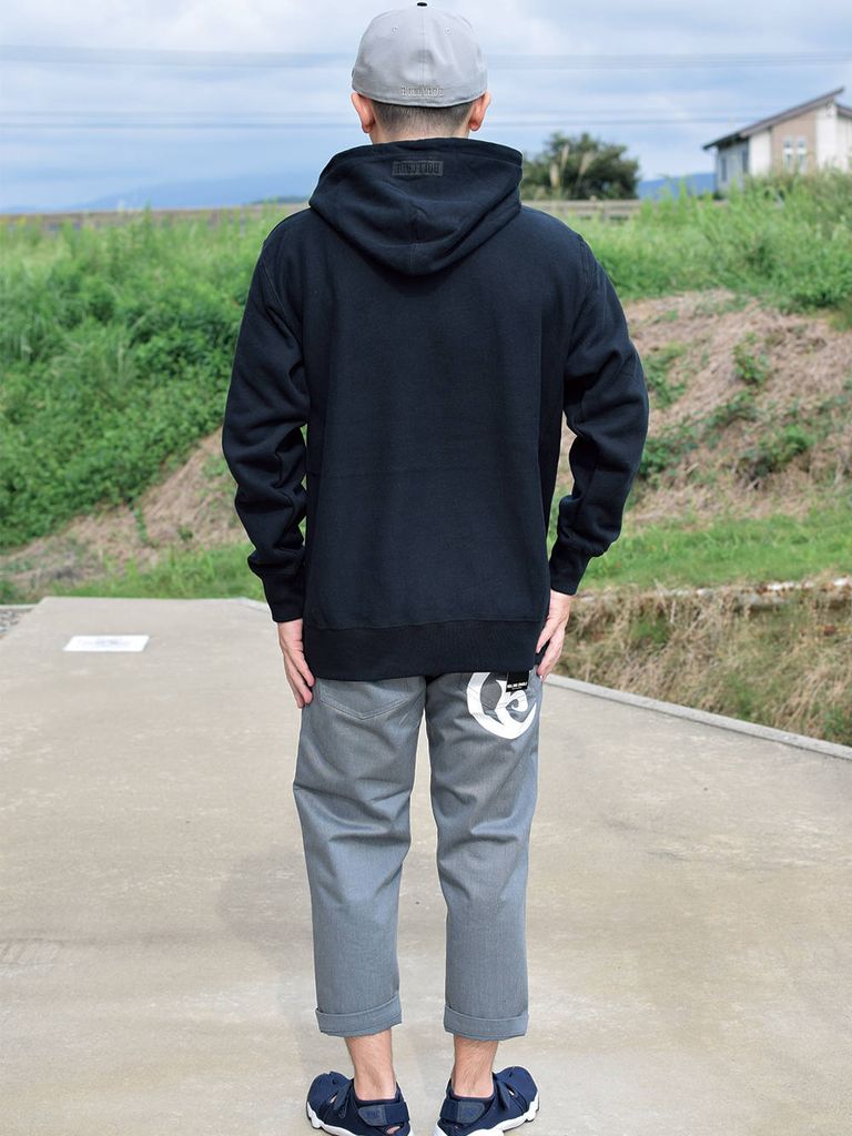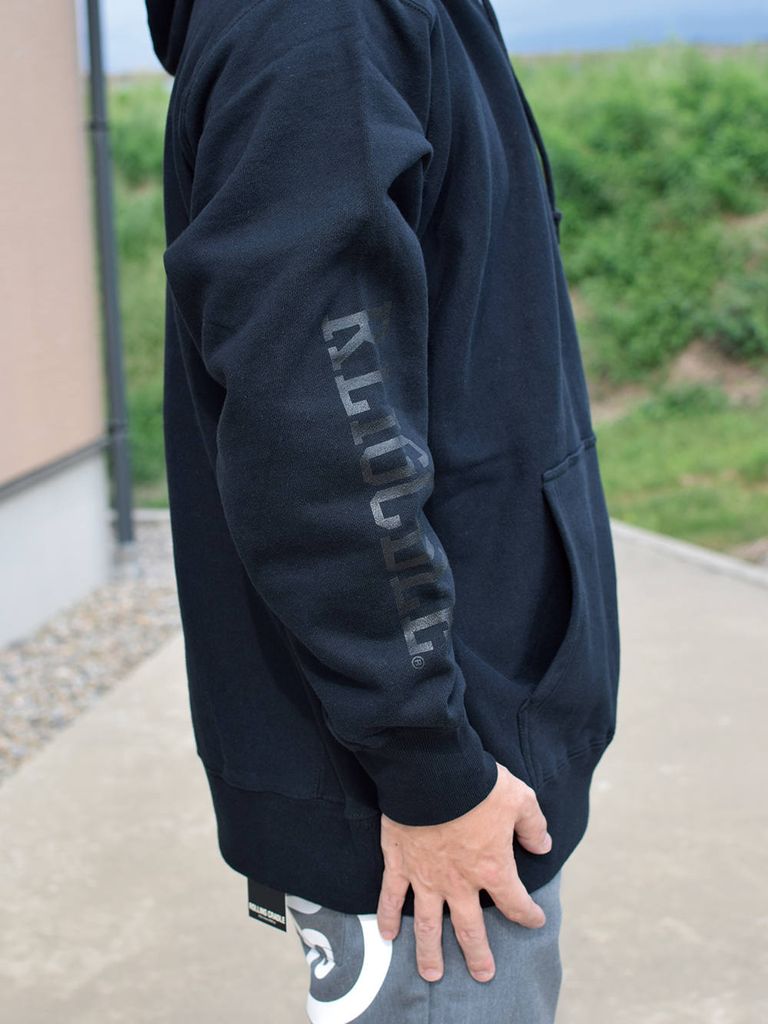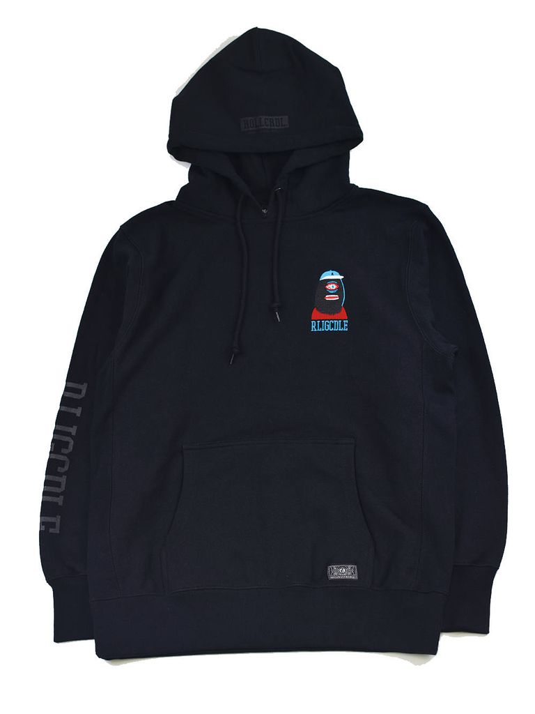 CYCLOPS TERRORの刺繍が不気味なプルオーバーフーディ。 フード、袖のプリントもポイント。