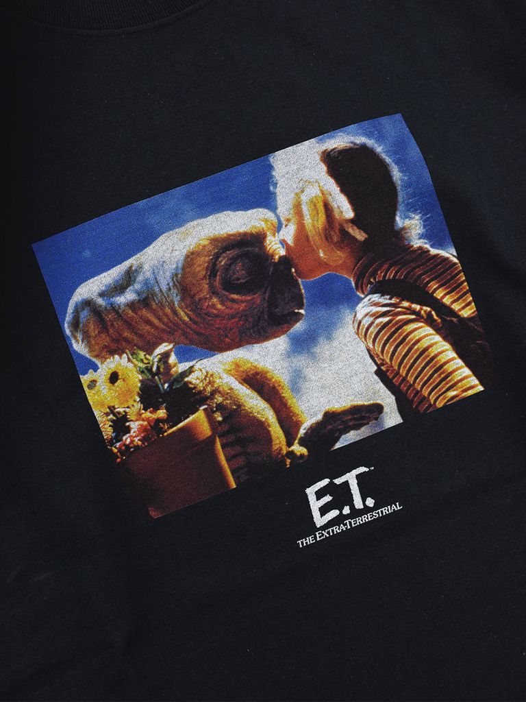 SFファンタジーの名作「E.T」コラボレーションアイテム。 映画の名場面をフルカラーで表現したロンT。