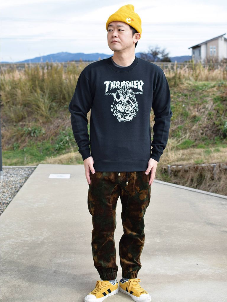 1981年にスケートの街として有名なサンフランシスコでエドワード.リギンズ氏が創刊したスケート雑誌【THRASHER MAGZINE】。スケート雑誌から始まり、80年代から今現在までのスケートシーンにおいて欠かすことのできないコアなスケートブランドとなりました。