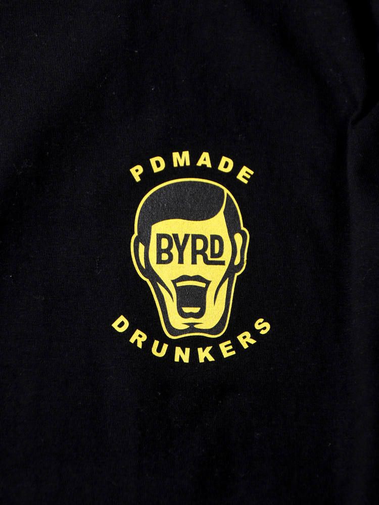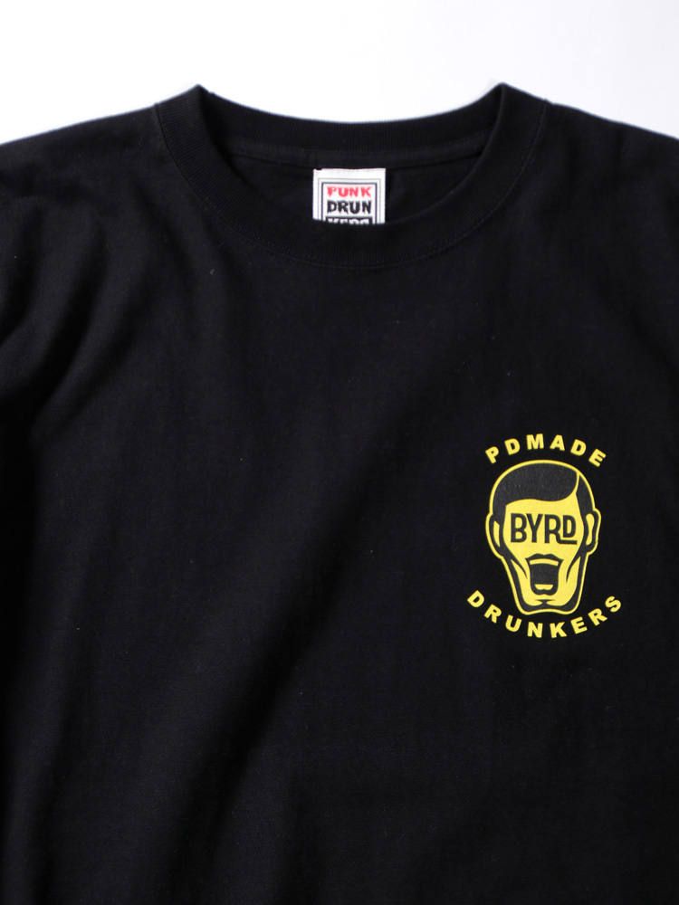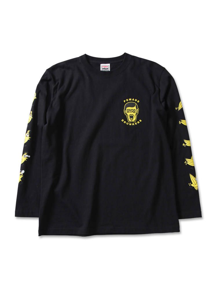 BYRDさんのキャラクターの鳥さんとあいつがミックスされたグラフィックが腕にきているロンTEEです。