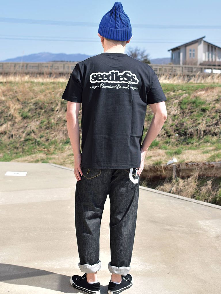 胸には抜きのs-dot、背中にはプレミアムブランドロゴが落とし込まれた、ありそうでなかった新しいコンビのロゴT。