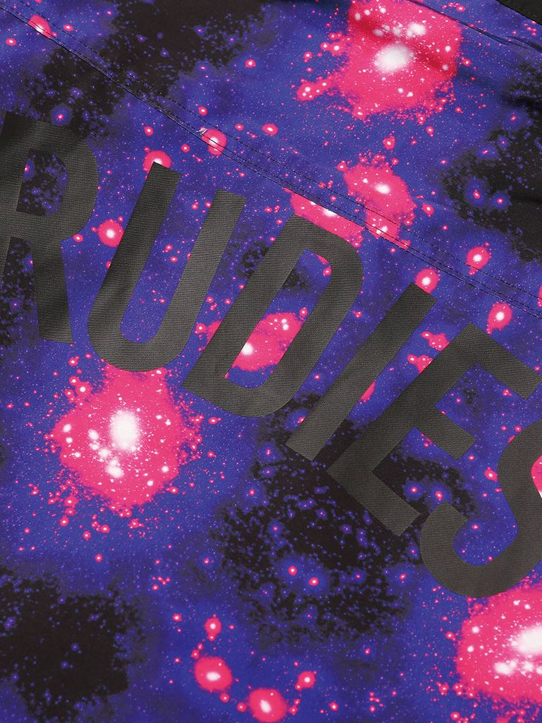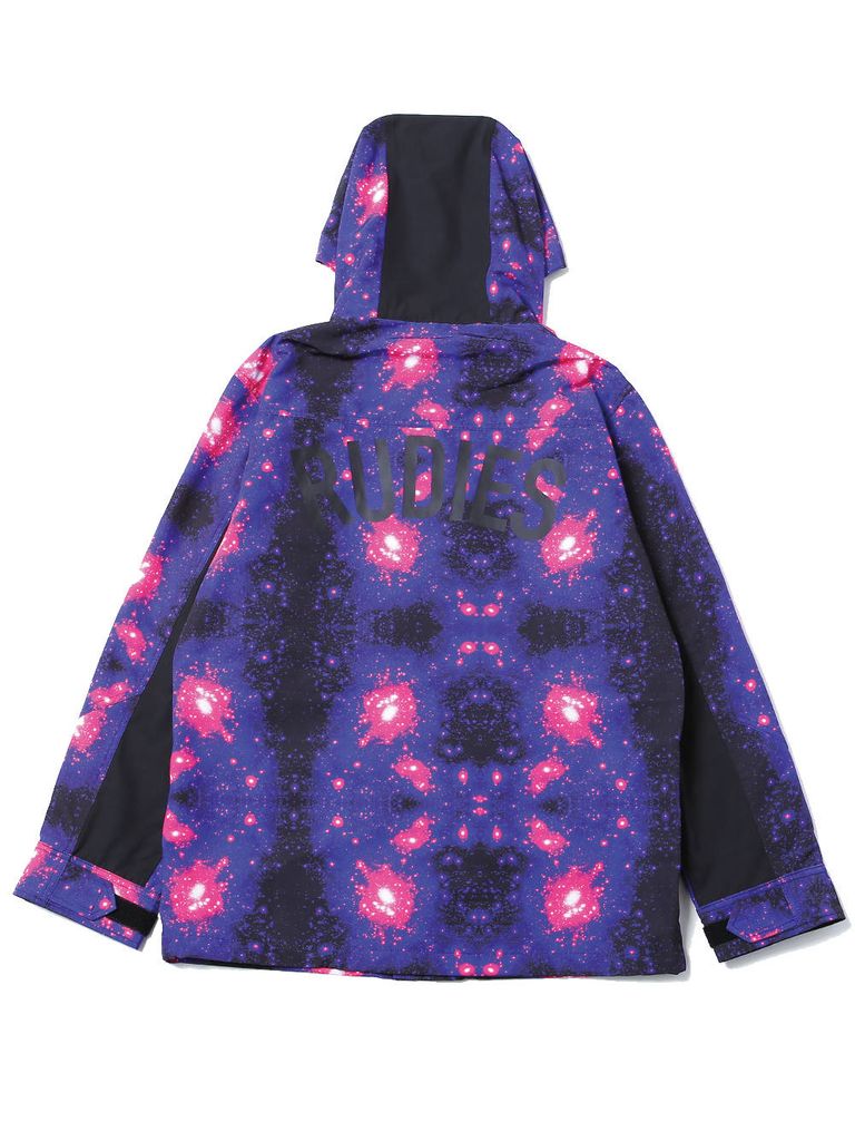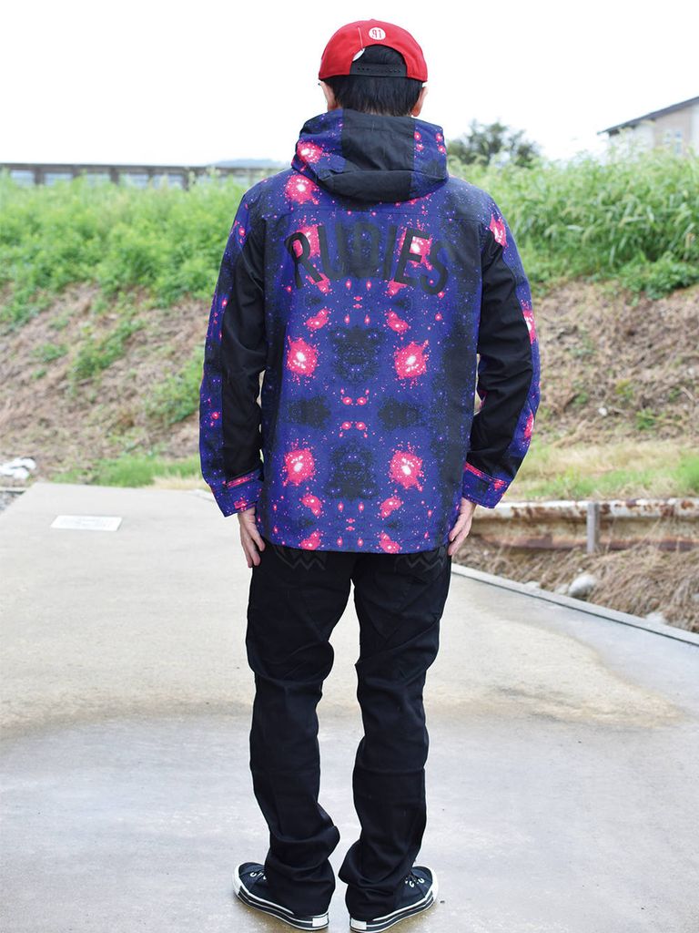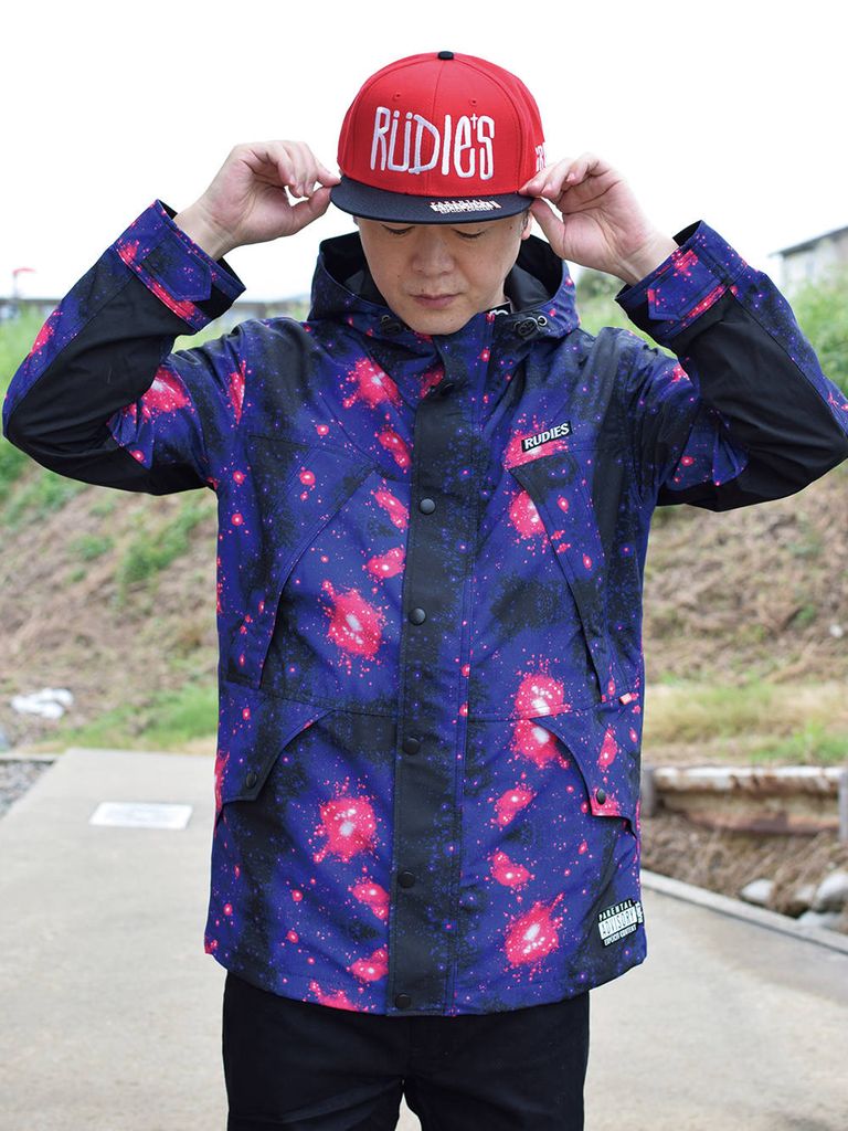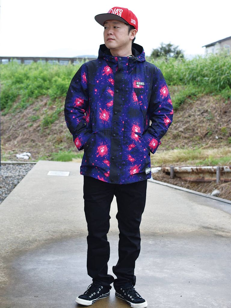 切り返し、ワッペン刺繍、プリントが施された、毎シーズン人気を誇るRUDIE'Sのマウンテンパーカー。2018AWはスプラッシュギャラクシー柄で2色展開。