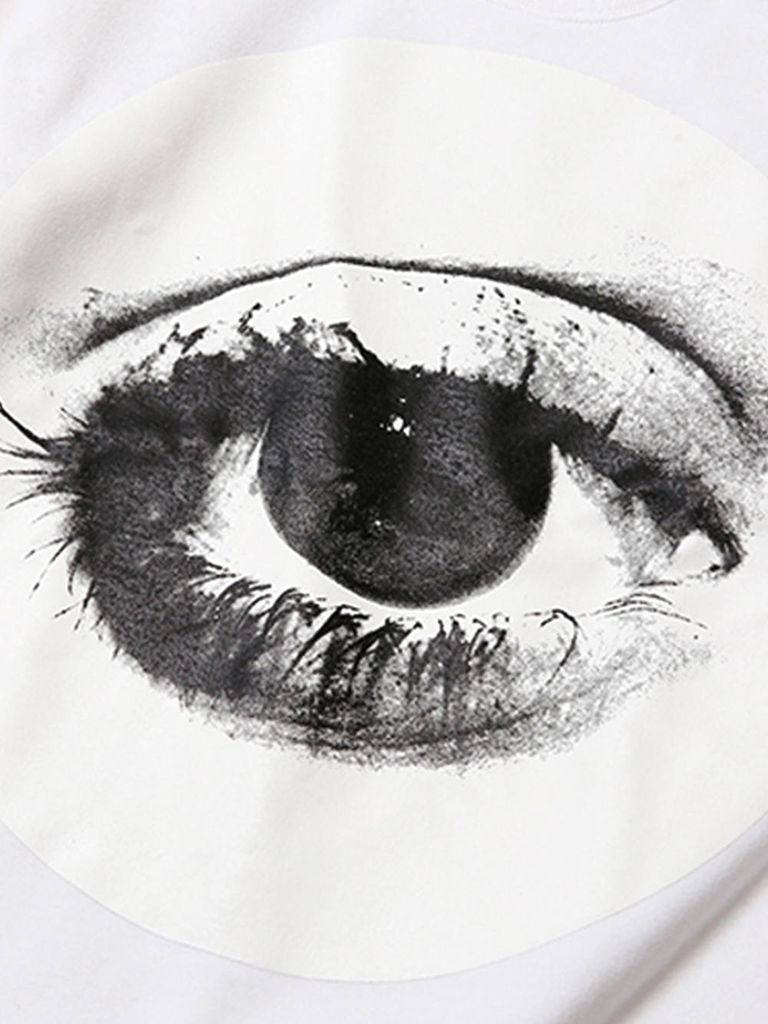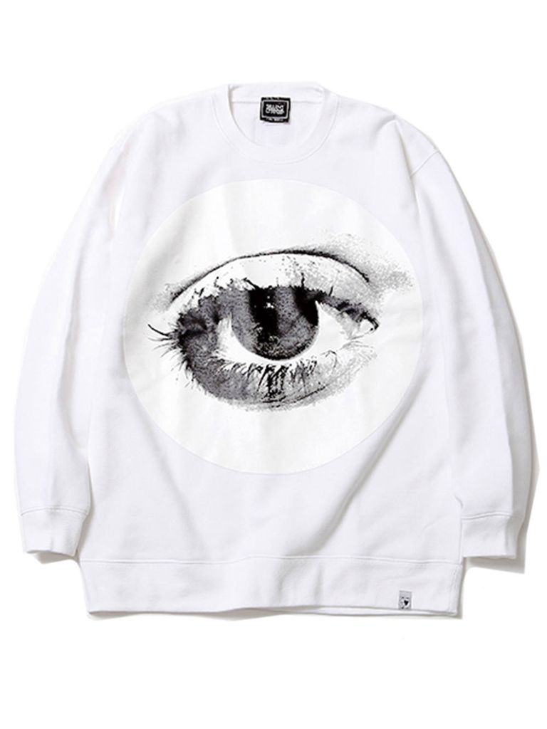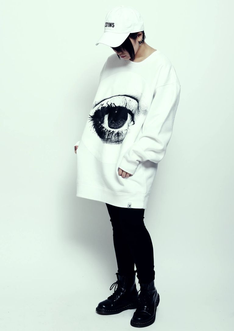 穴から覗く眼を象ったグラフィック。 特大プリント版を使用したオーバーシルエットのみのワンサイズ展開。 裏起毛スウェット地なので保温性も抜群。 ルーズな着こなしをお楽しみください。