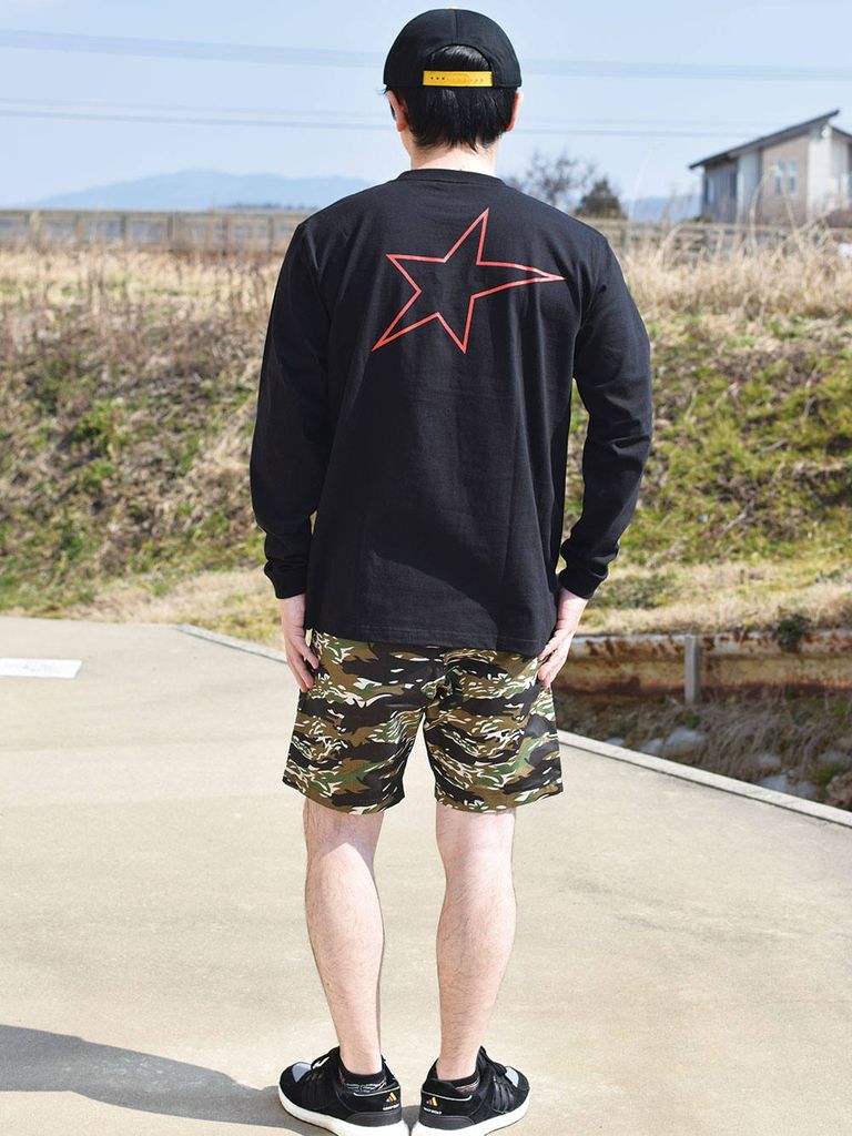 バックには大きな red star  がプリントされた