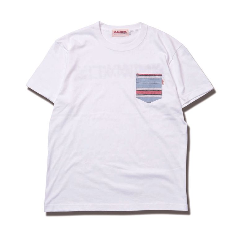 どこか夏を感じさせるボーダー柄生地をポケットに付けたTee。
