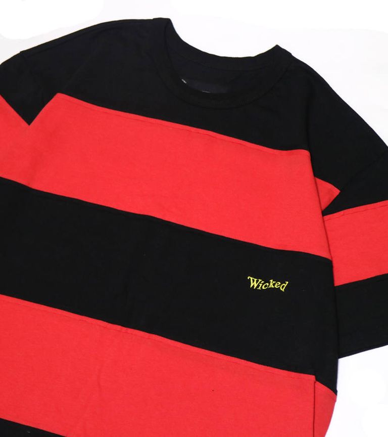 カットオフ生地を繋ぎ合わせたボーダーロンT。