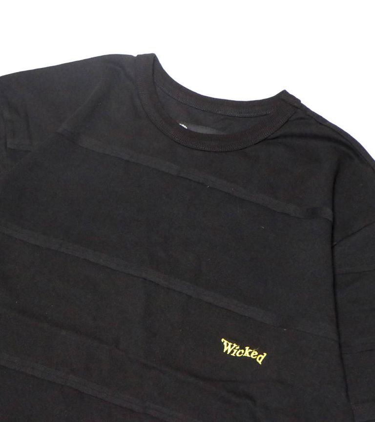 カットオフ生地を繋ぎ合わせたボーダーロンT。