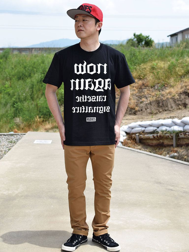 フロント・バックにプリントを施したTシャツ。モノトーンカラーでソリッドな仕上がりとなっています。