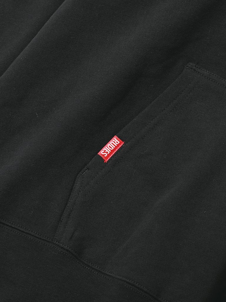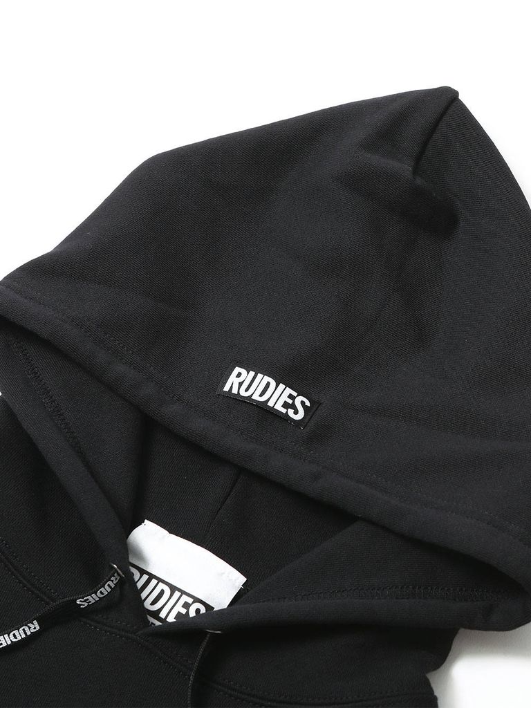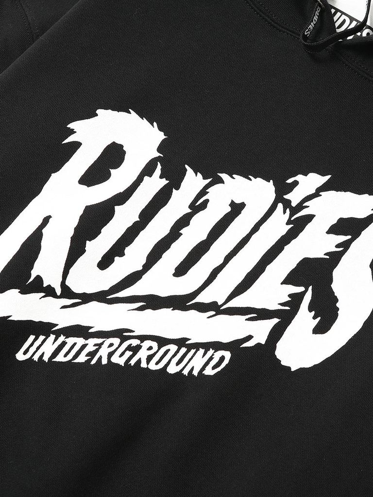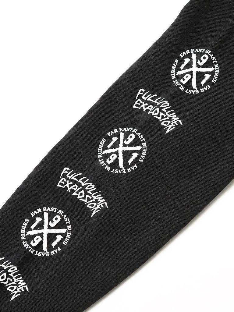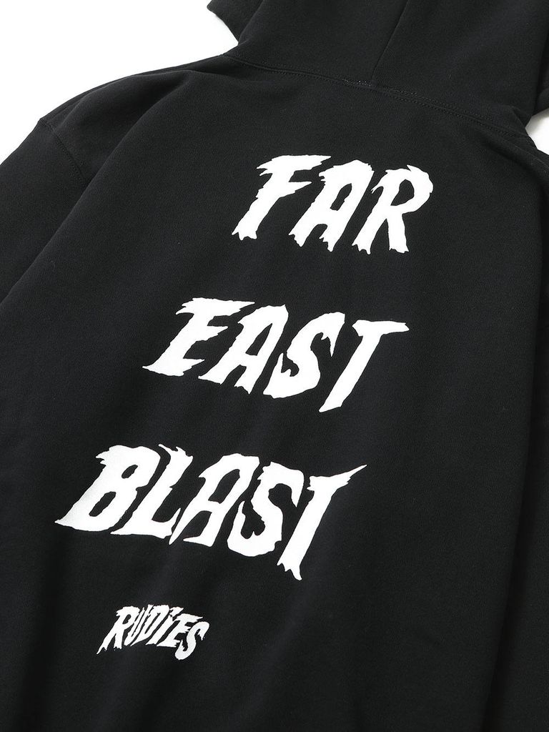 フロント・バック・両袖にプリントが施されたフードスウェット。存在感のある仕上がりでブラック・オレンジ・ホワイトの3色展開。