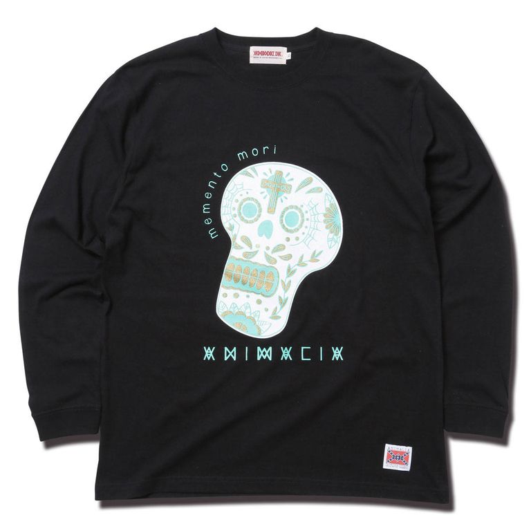 ラメプリントにて表現したカラベラプリントが入るモデル。メキシコのDay of Dead(死者の日)に飾られるスカルを装飾した物。今季のテーマでもある"MEMENTO MORI"(ラテン語で「自分がいつか必ず死ぬことを忘れるな」「死を忘るなかれ」という警句から「今を楽しめ」という意味を持つ言葉)の文字が入る。