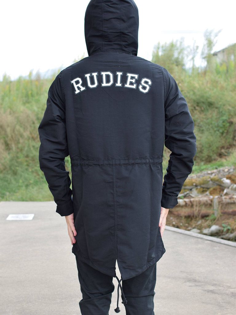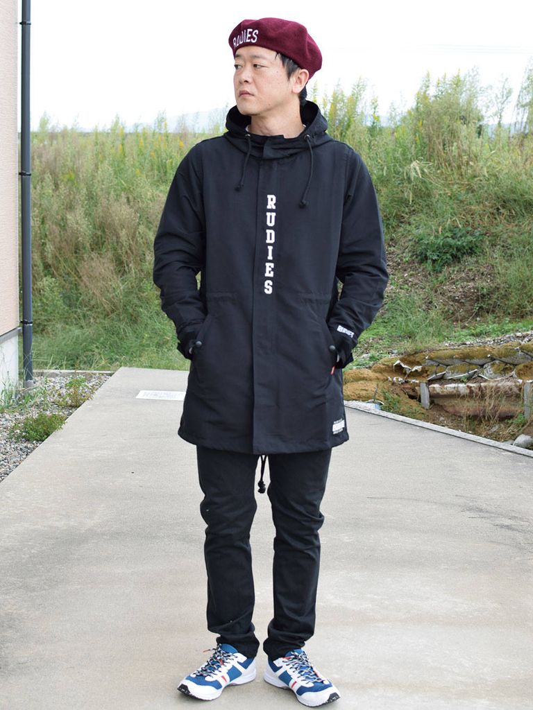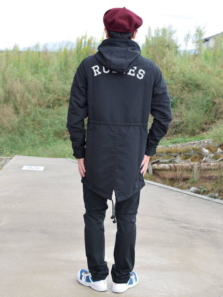 フロント・バックにプリントが施されたフィッシュテールコート。秋口にざっくりと羽織れる男女共にオススメのアイテムです。ブラック・カーキの2色展開。