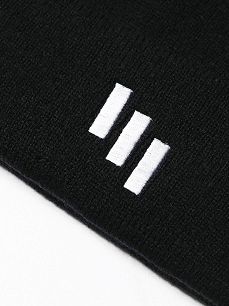 をアイコン化した3本ラインを刺繍したビーニー。 装飾を極力抑えたシンプルな表情。 様々なスタイルにプラスできるアイテム。