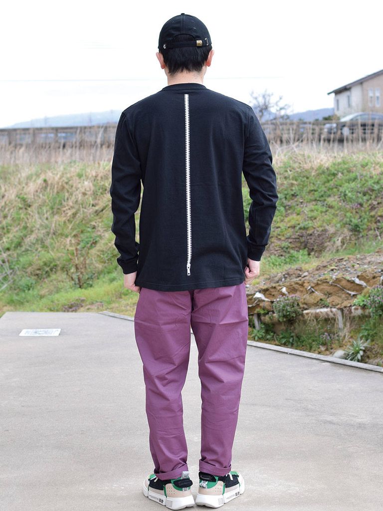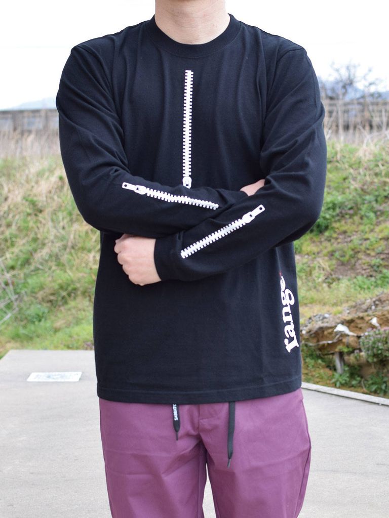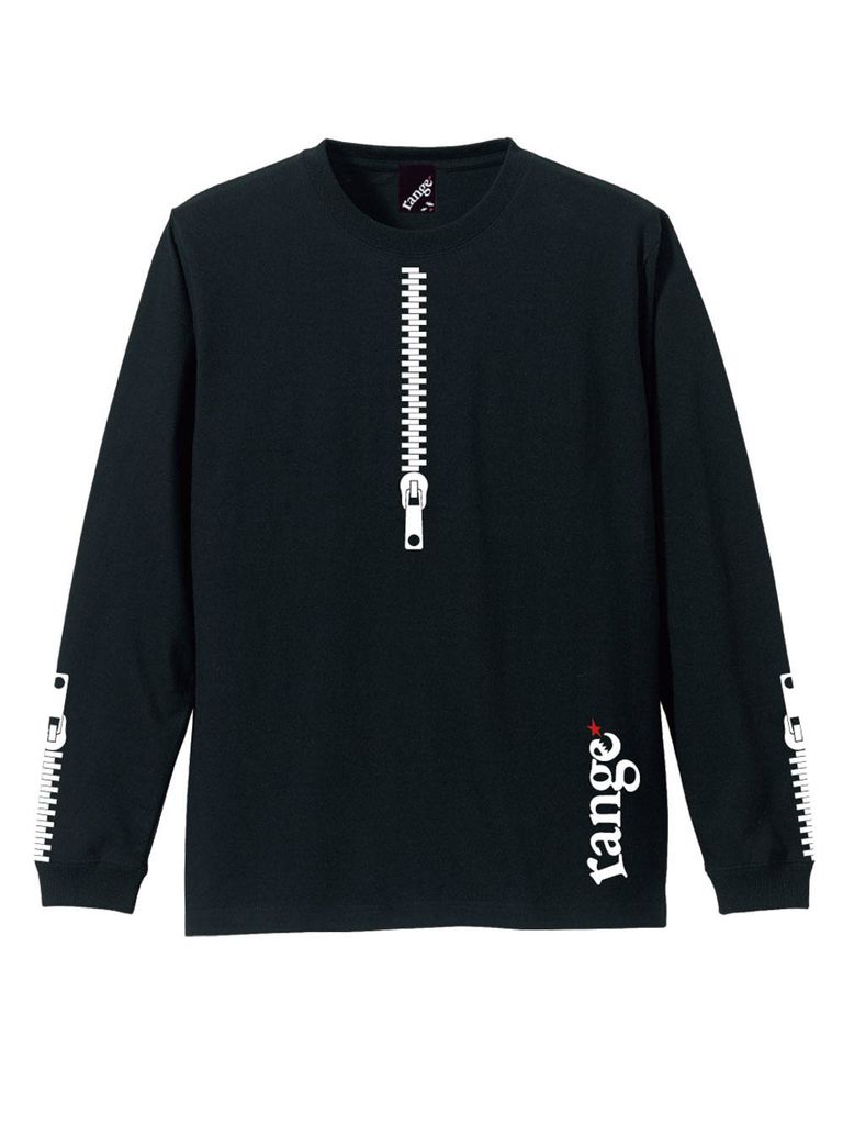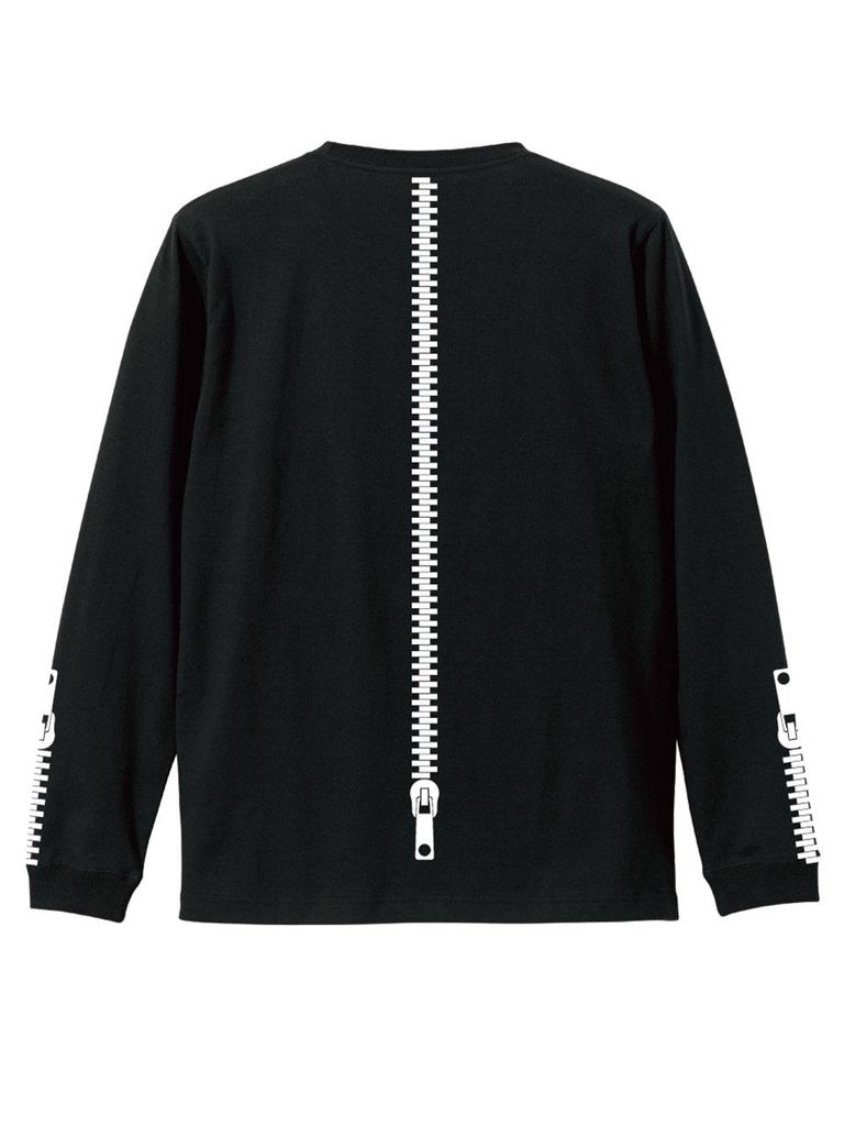 フロント、バック、両袖にジッパープリントが入ったロンT。