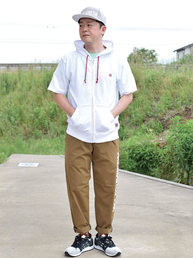 8.4oz春夏時期に最適なライトオンス生地、2重フードにて仕上げた半袖SWパーカー。