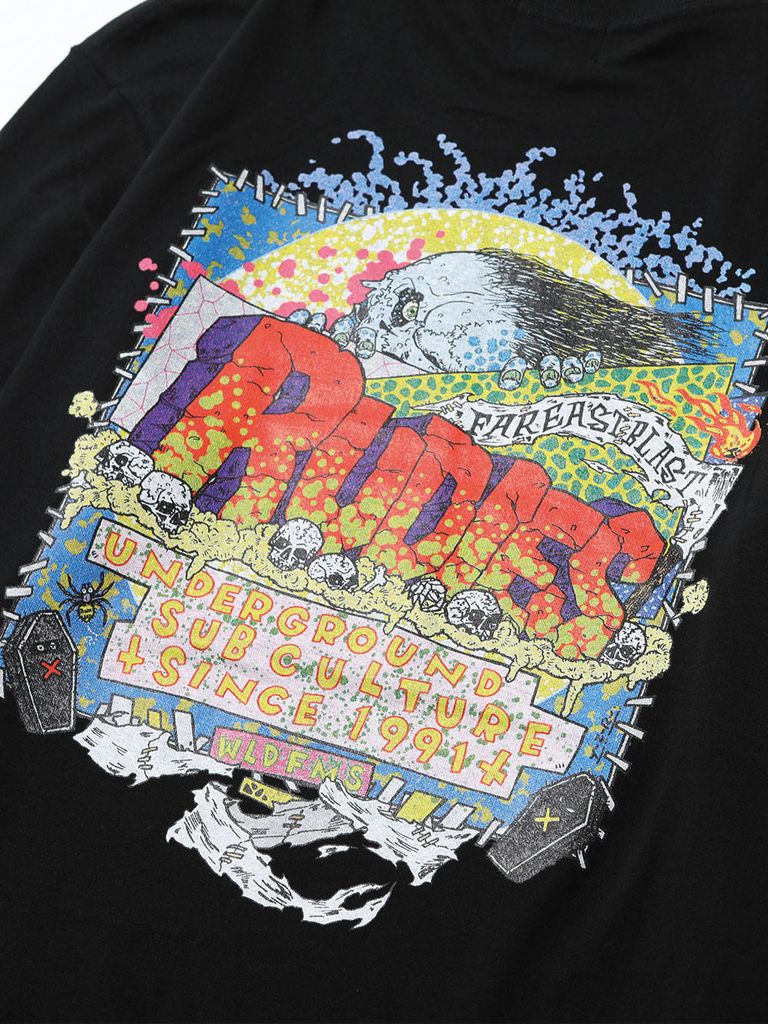 数々のアーティストのデザインを手がける Yuzuru Namiki によるアートワーク。ロックテイスト溢れるデザインをフルカラープリントで落とし込みました。ブラック・ホワイトの2色展開。