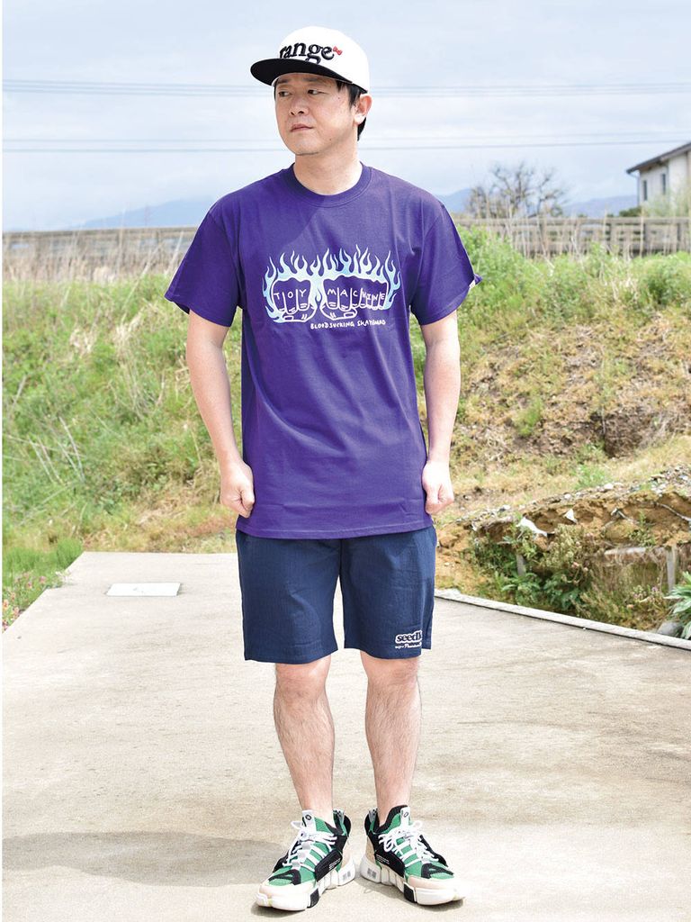フロントに大きくプリントされたお馴染みのフィストロゴだが、いつもとはひと味違いフィストの背後が燃え盛りさらに力強い表現になった1枚。ここぞという勝負のときなどに着たい主張の強いアイテムになっています。