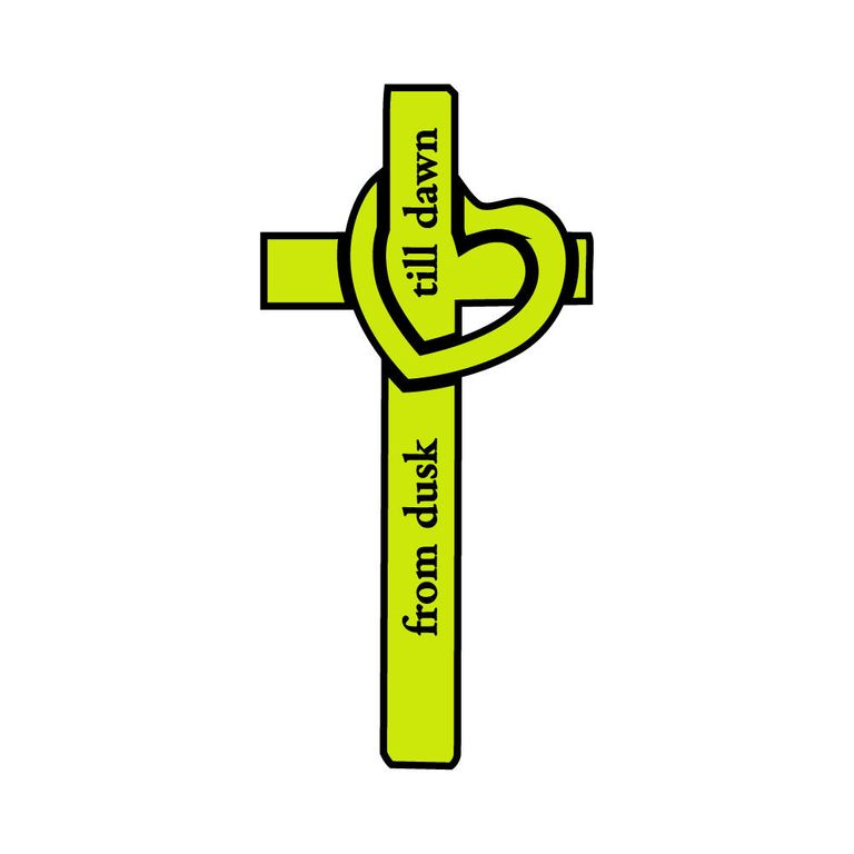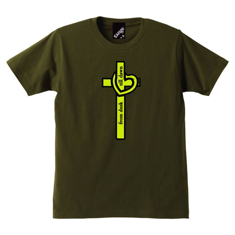 十字架にハートが掛かるグラフィック。十字架には from dusk till dawn の文字。 黄色が絶妙にいい感じです。