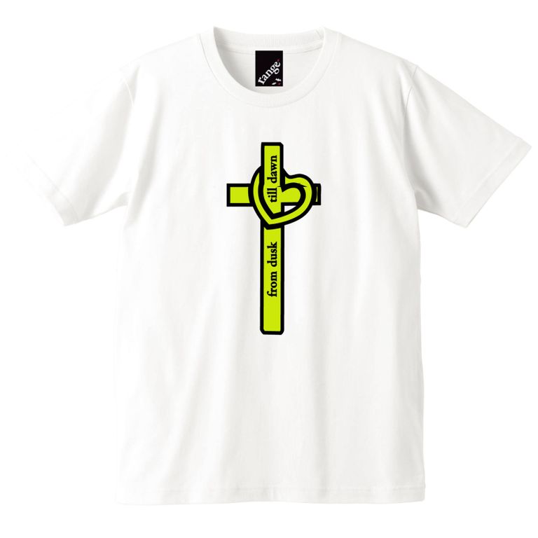 十字架にハートが掛かるグラフィック。十字架には from dusk till dawn の文字。 黄色が絶妙にいい感じです。