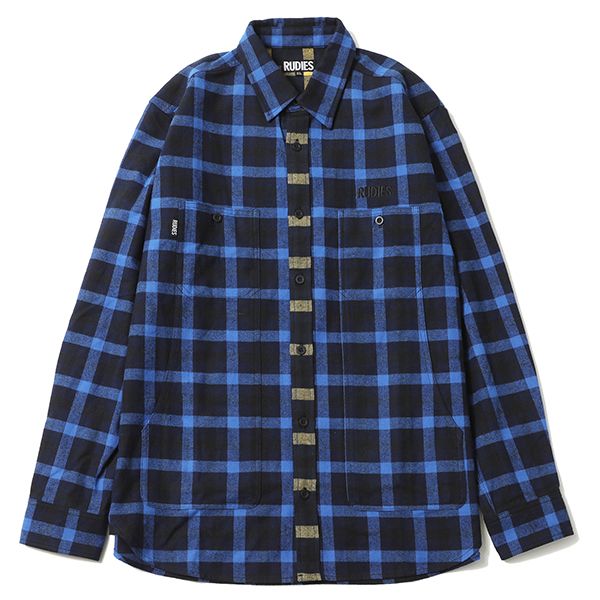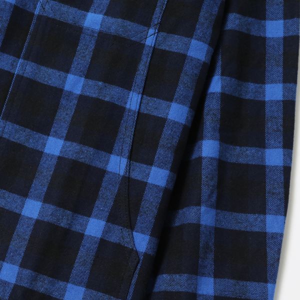 前立ての配色チェックが印象的なチェックシャツ。 左胸は刺繍、右ポケットにはピスネームが付くほか、 サイドポケットも付き、実用性にも優れた1枚。 スタンダードなシルエットですので、寒い時期にはアウターの中でもすっきり着ることができます。