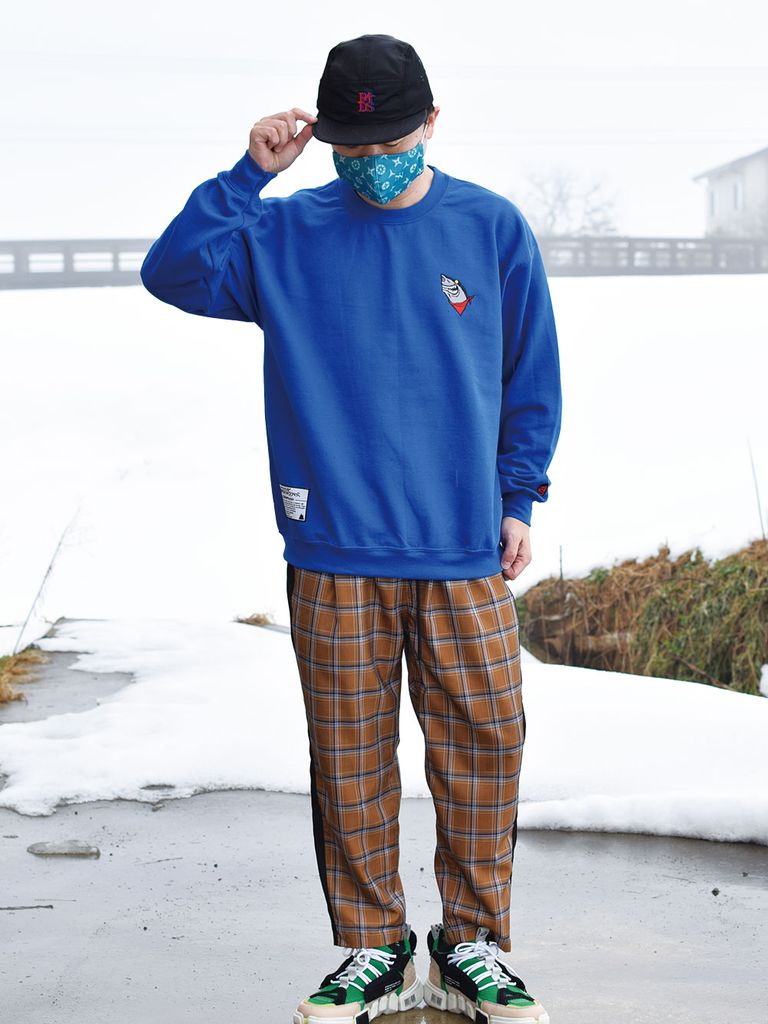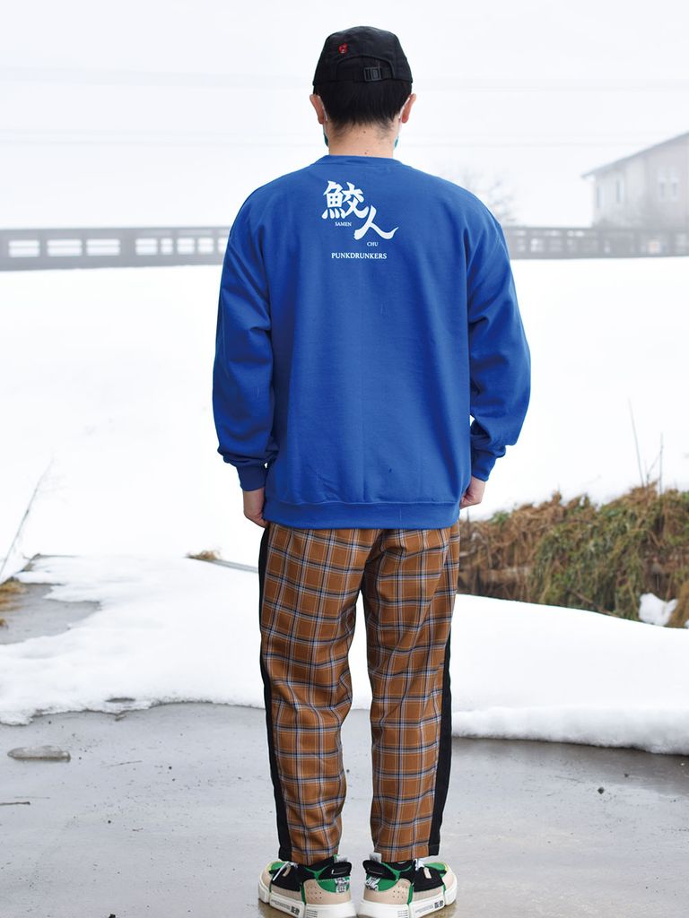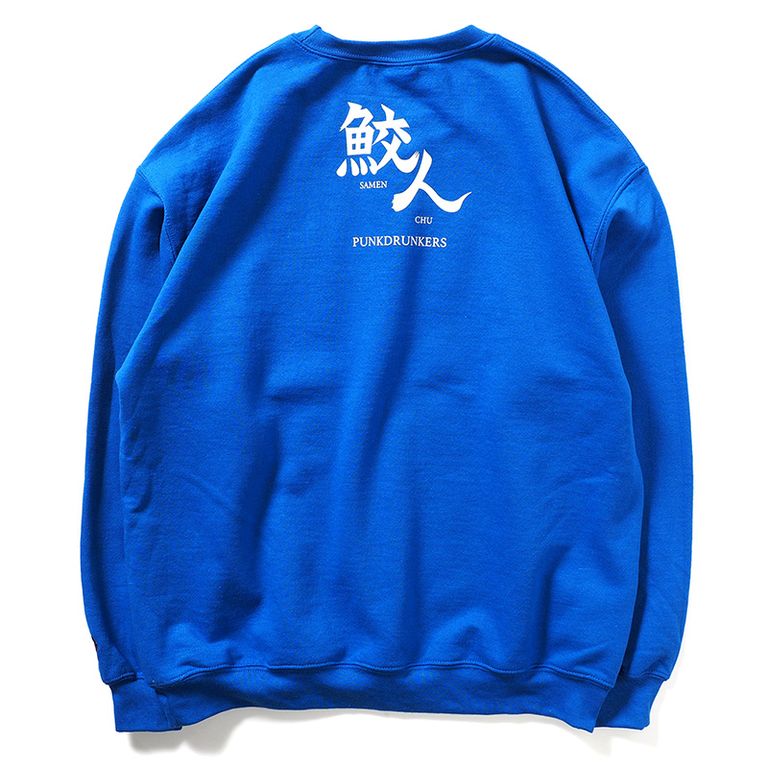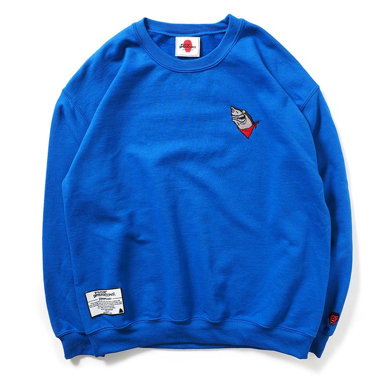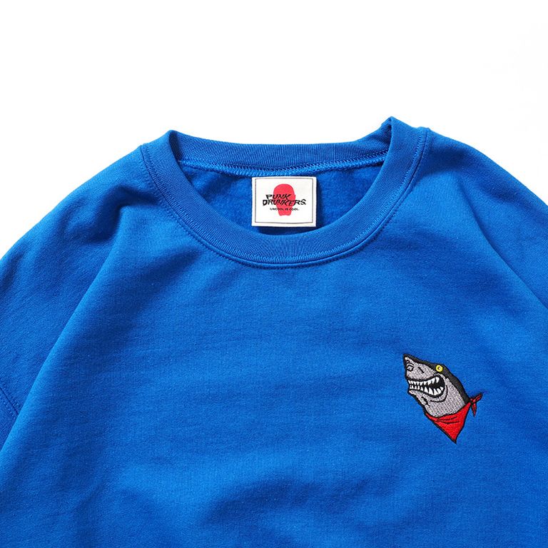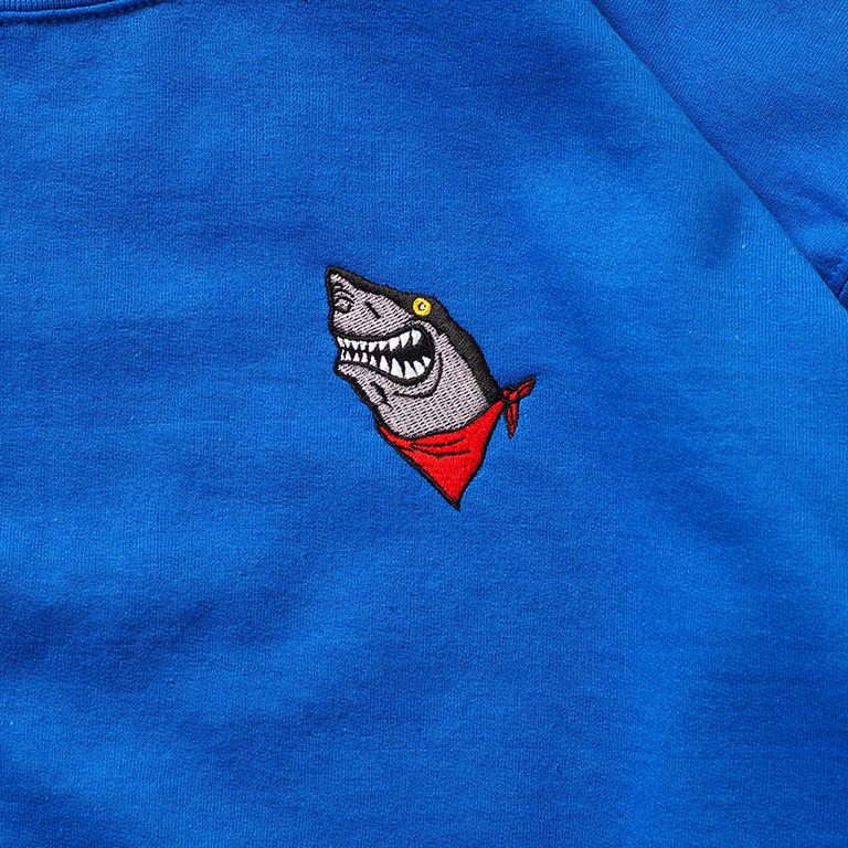 バンダナをした鮫人のワンポイント刺繍が入ったトレーナー。