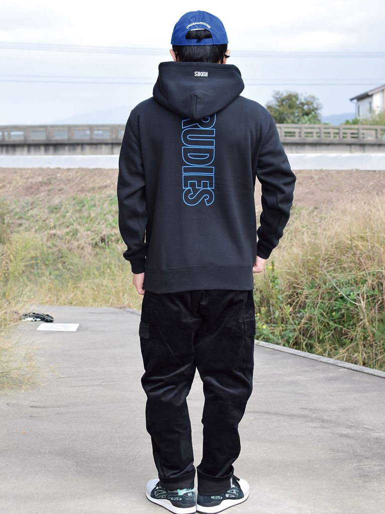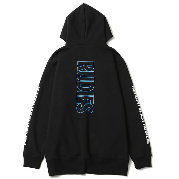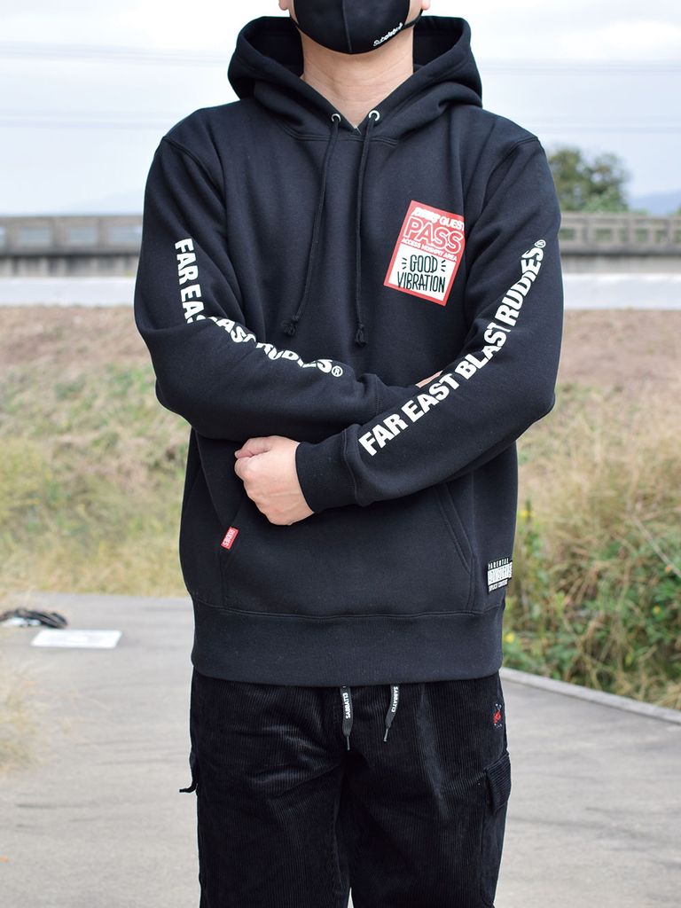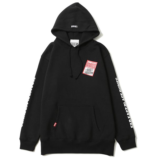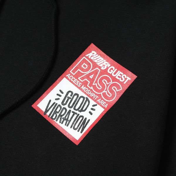 ゲストパスをプリントしたプルオーバーパーカーです。 RUDIE'Sらしい音楽をモチーフにした1枚。 袖、バックにもプリントを施しました。